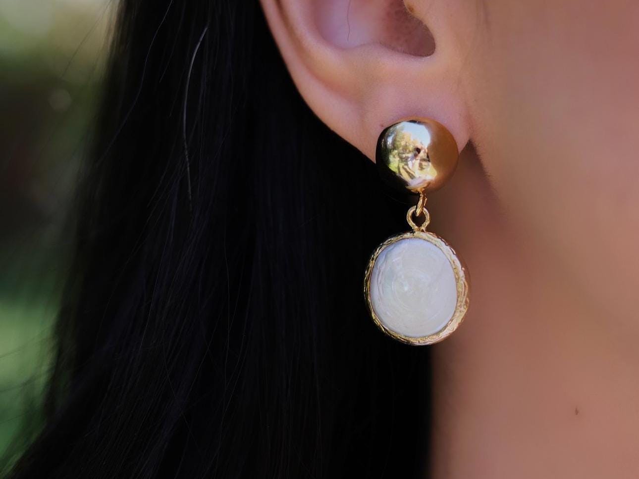 Baroque Pearl Drop Earrings, Gold Plated Handmade Pearl Jewelry, Natural Freshwater Pearl Bridal Earrings Gift for Her