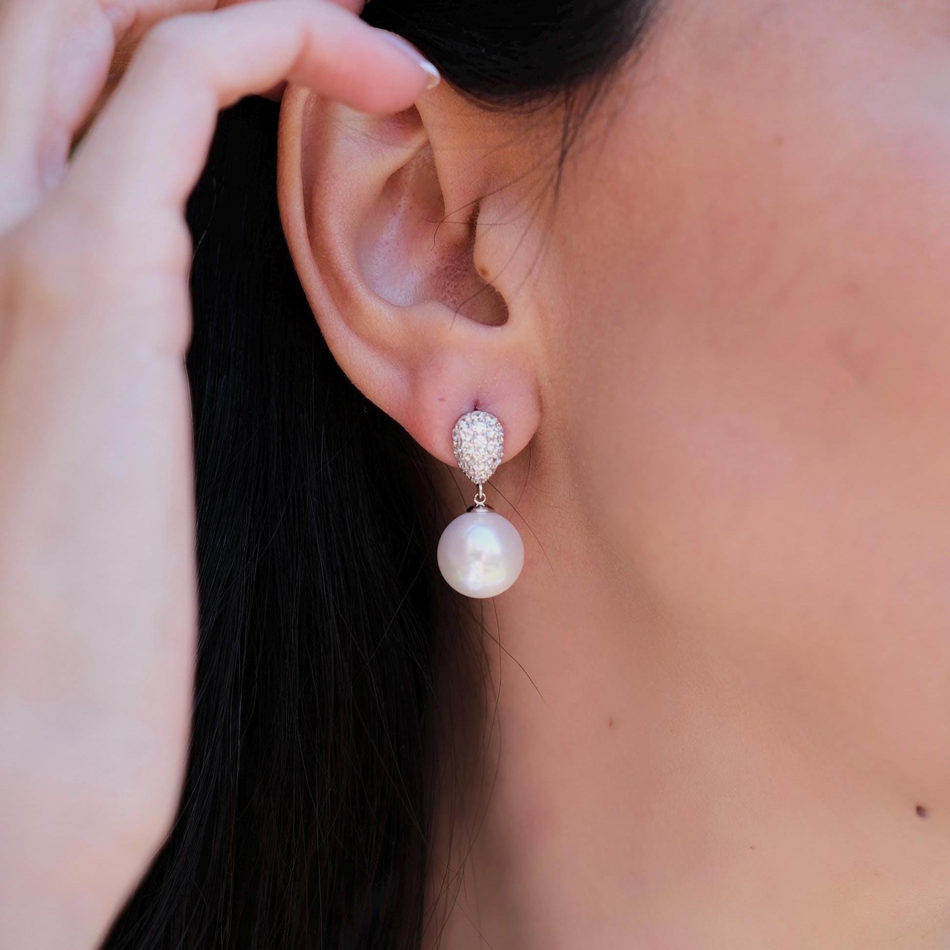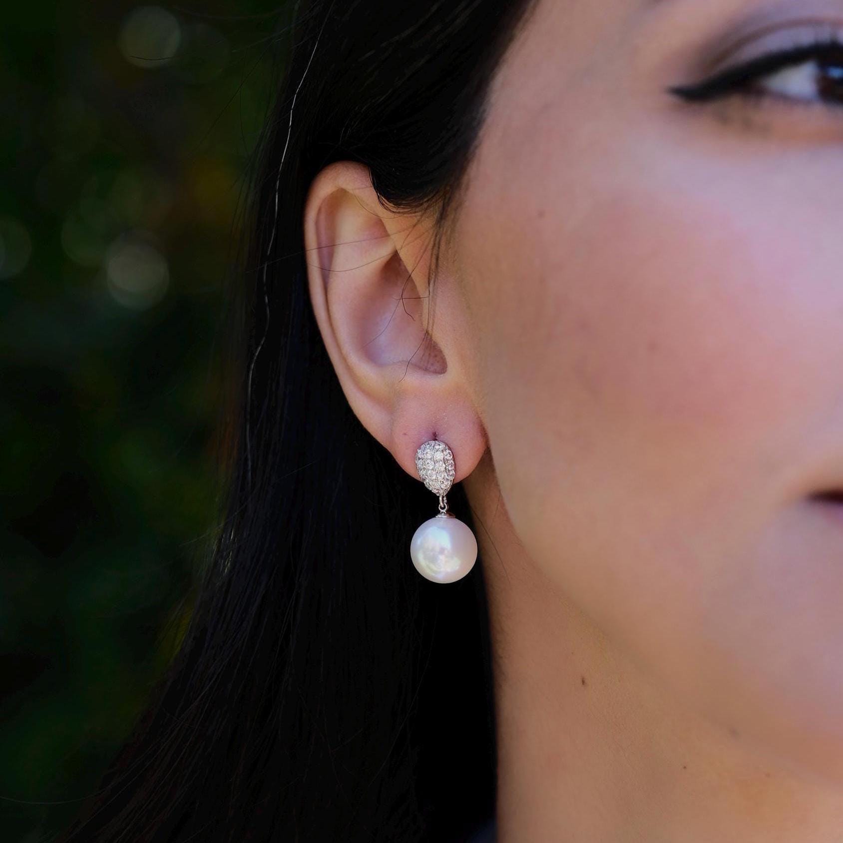 đź’– Handmade Pearl & Diamond Bridal Earrings Luxurious Wedding Jewelry