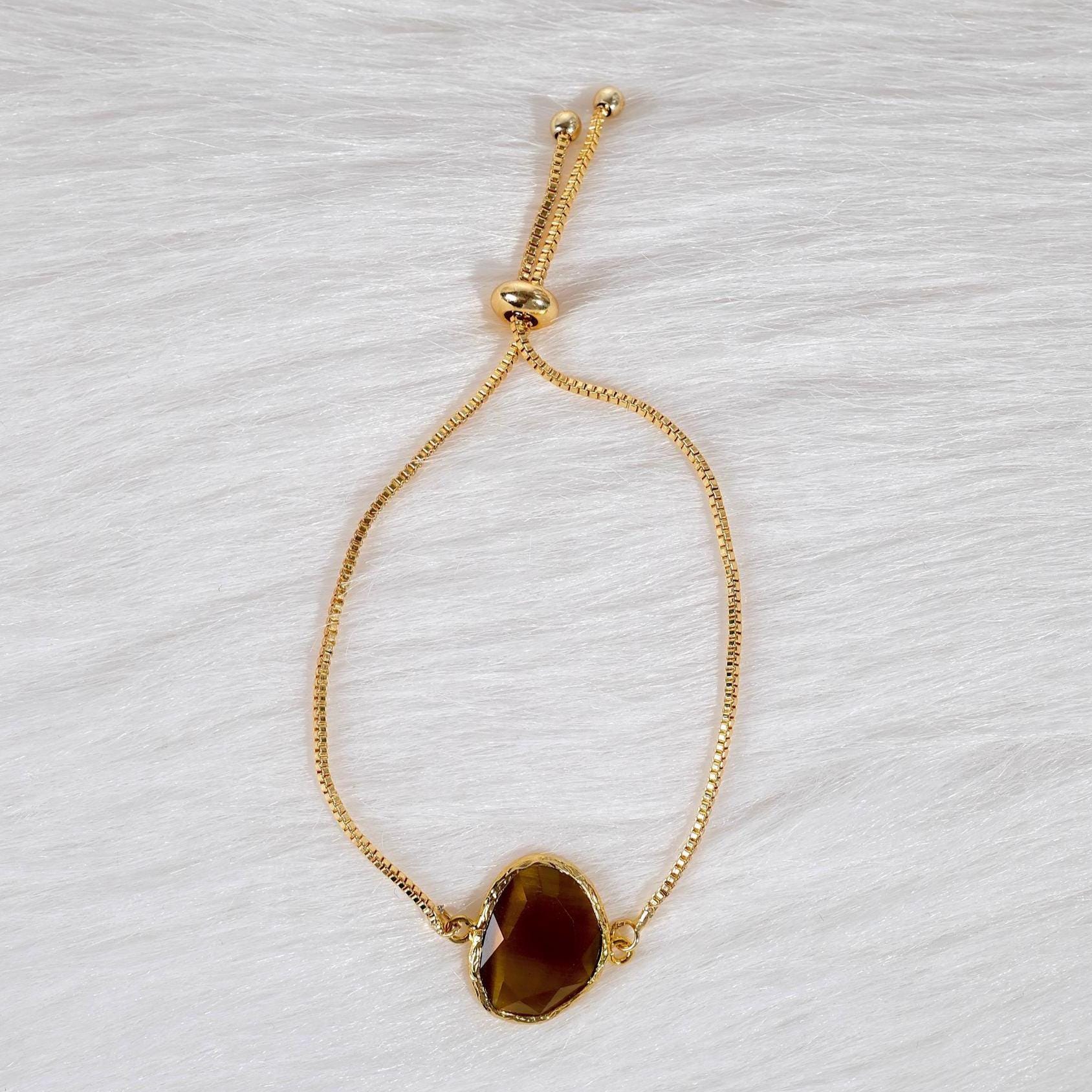 A delicate gold chain bracelet featuring a natural Tiger’s Eye gemstone.