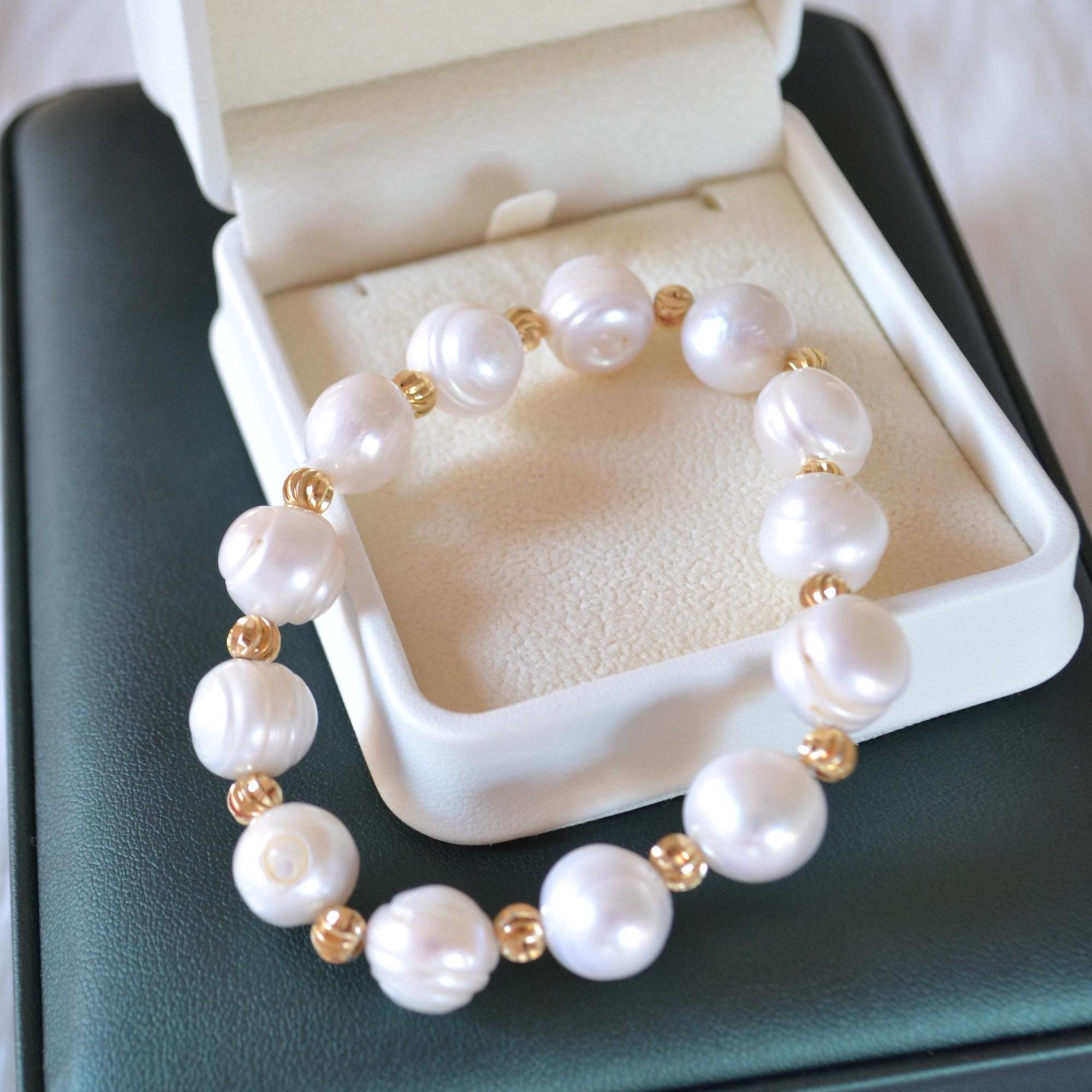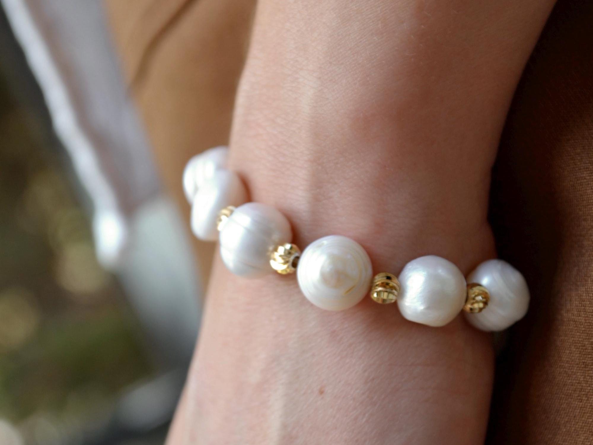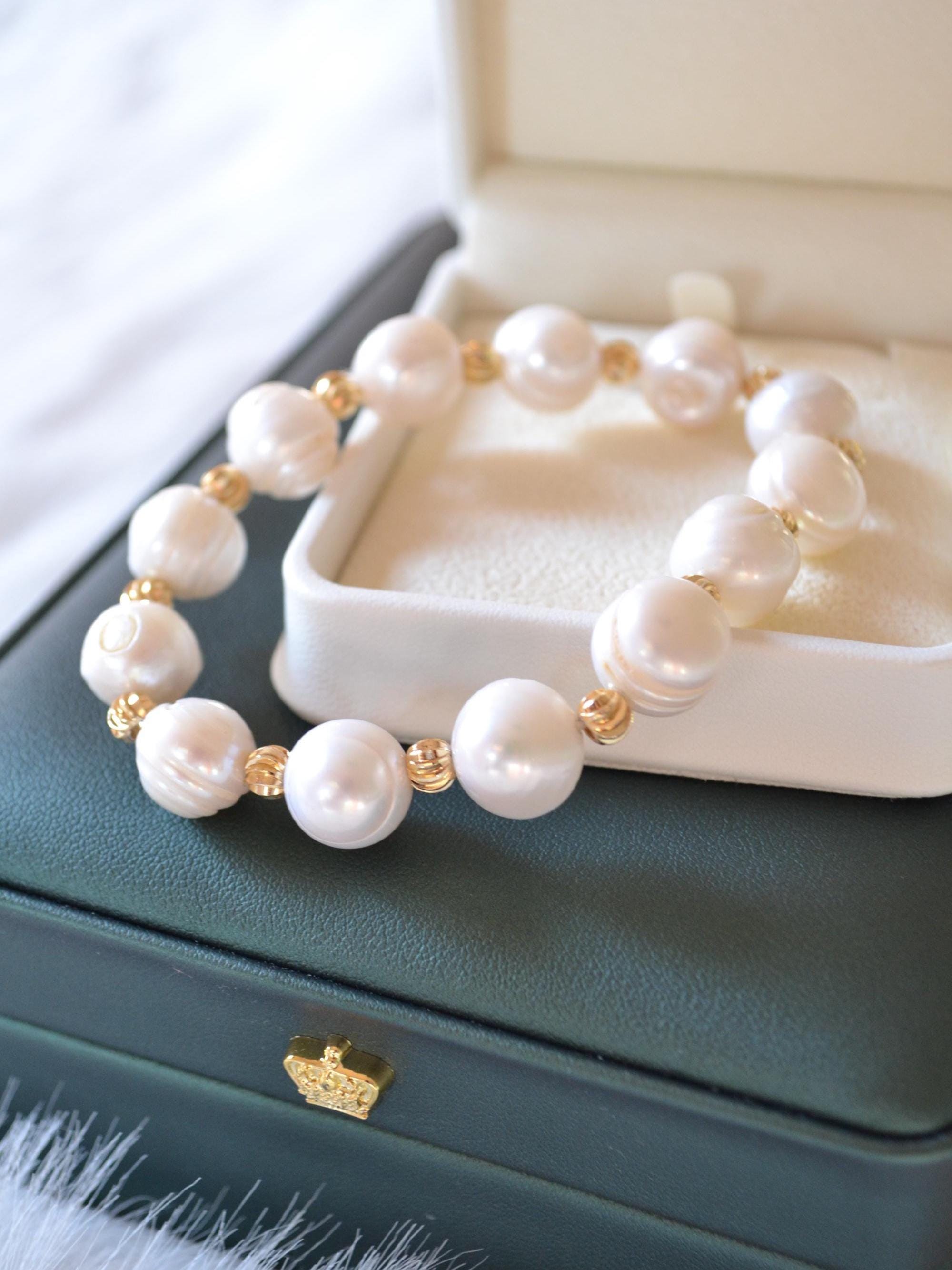 Baroque Pearl Bracelet, Gold Beaded Freshwater Pearl Jewelry, Chunky Bridal Wrist Accessory