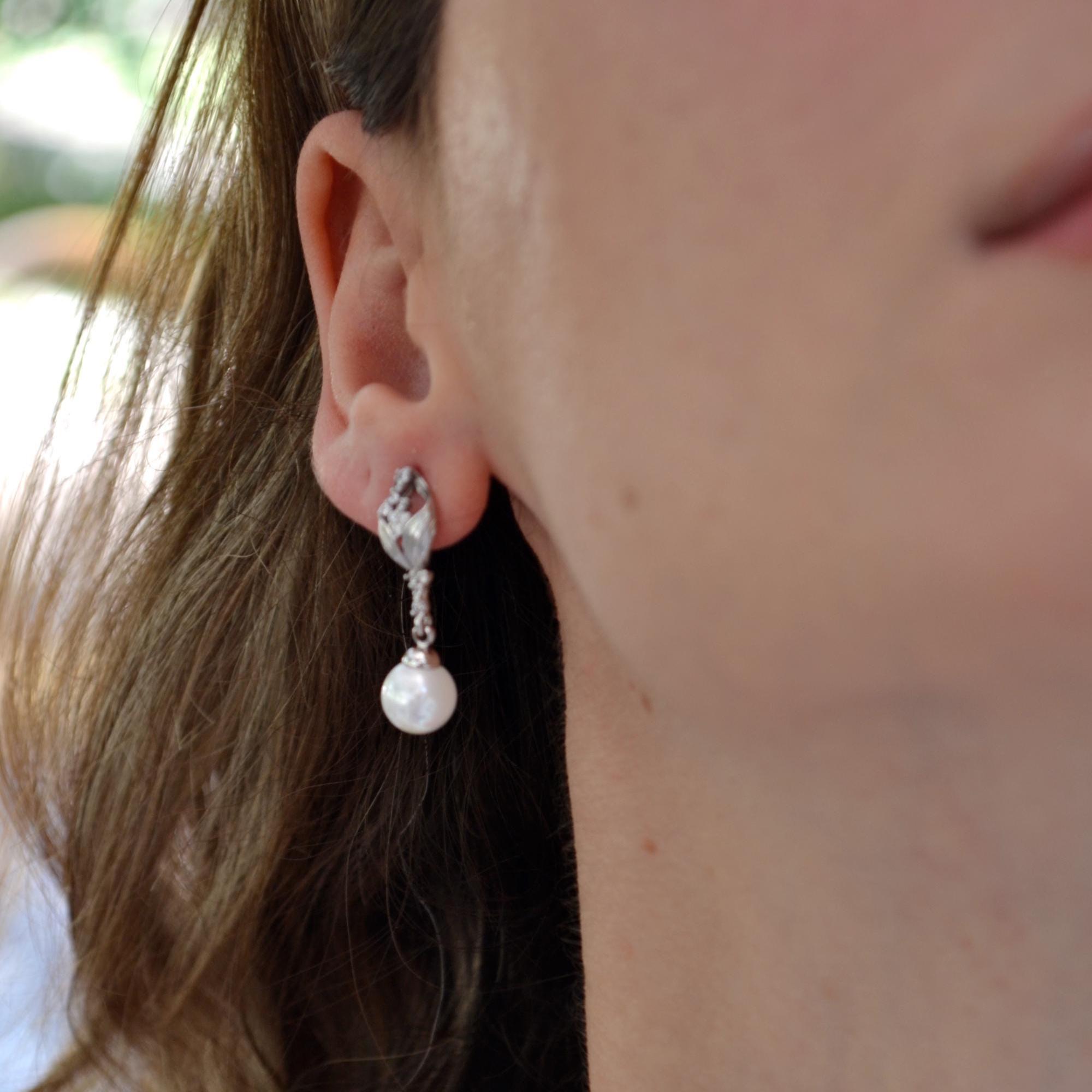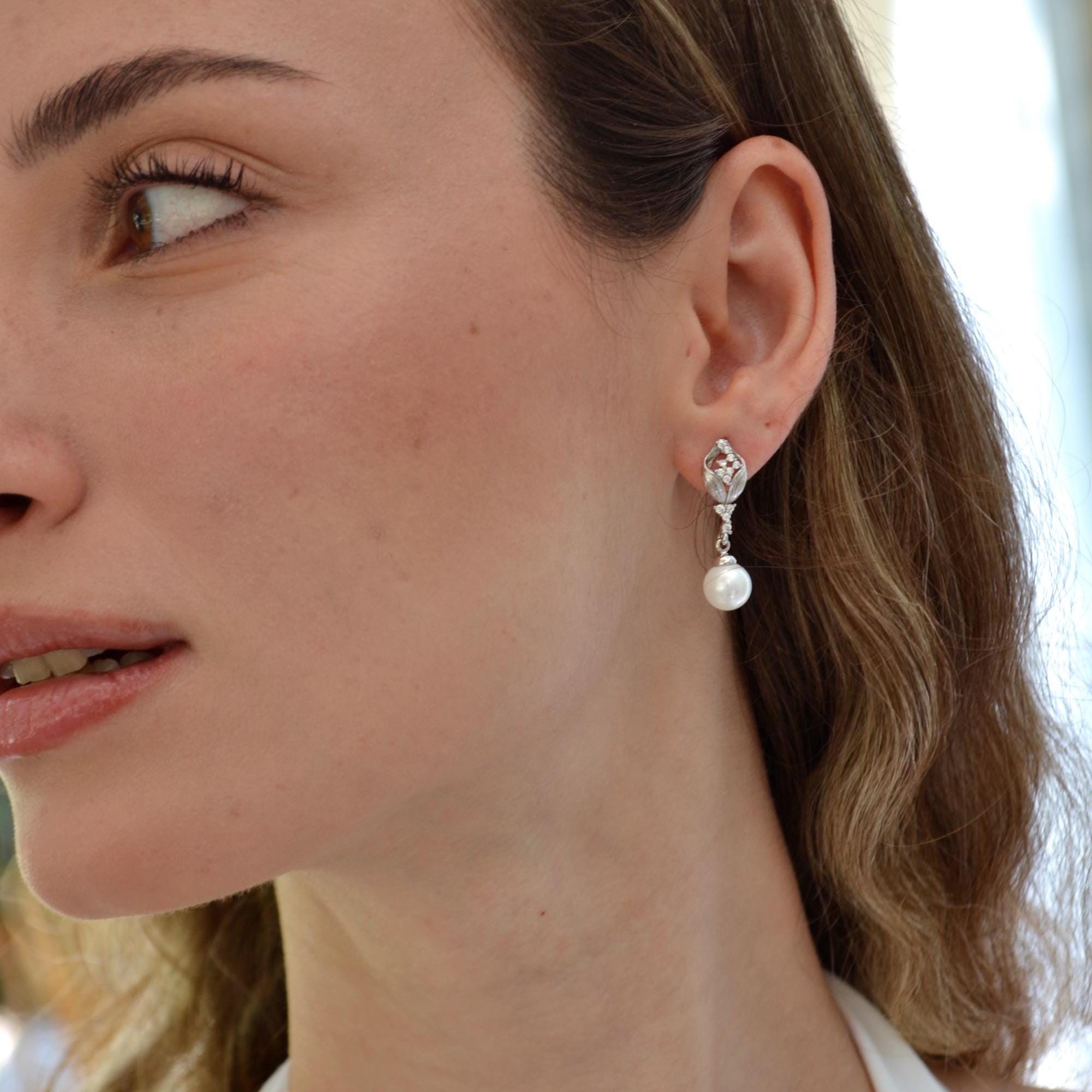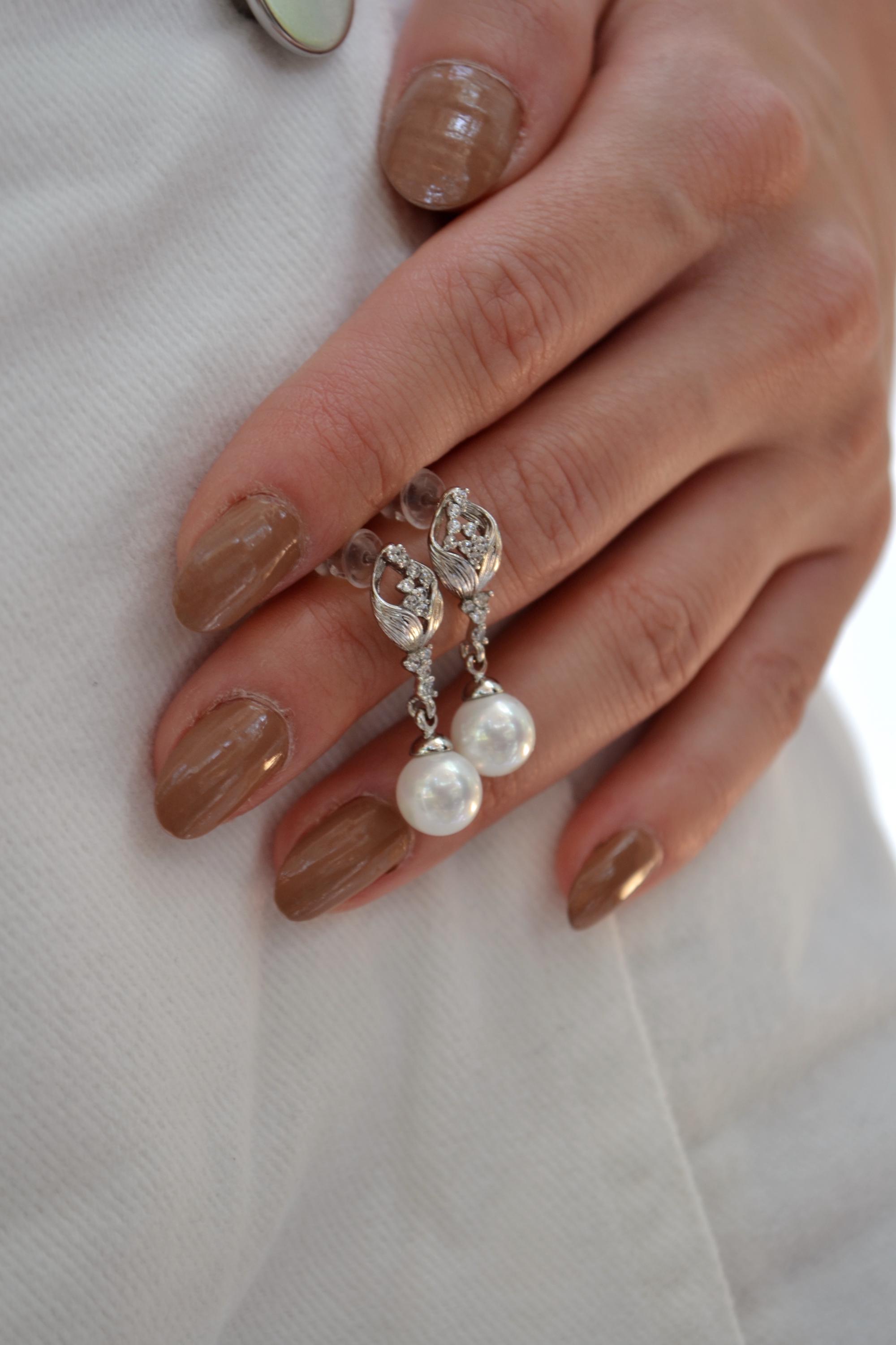 These handmade pearl drop earrings combine timeless elegance with modern craftsmanship. Featuring luminous round pearls suspended from silver toned details, they make the perfect accessory for weddings, special occasions, or everyday sophistication.