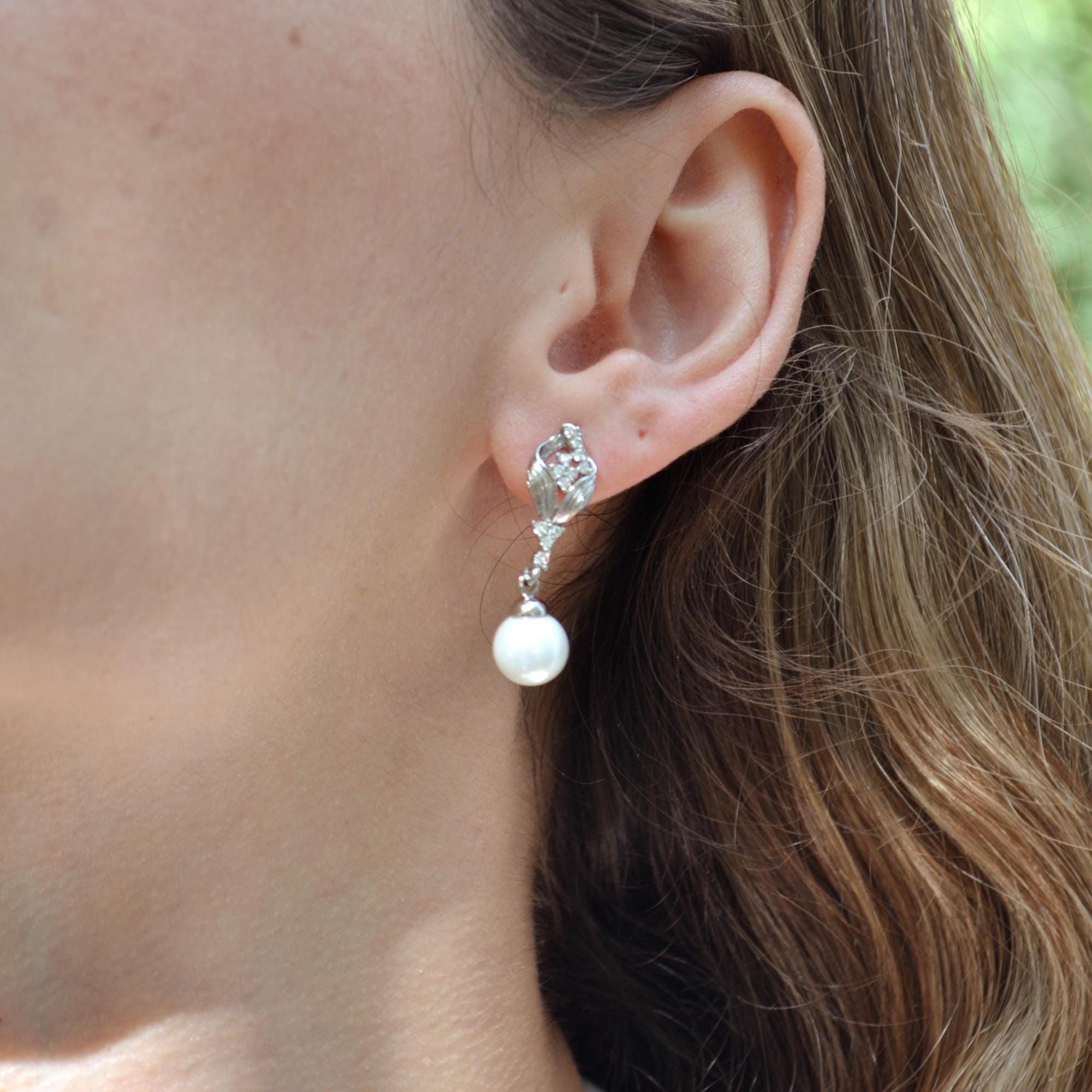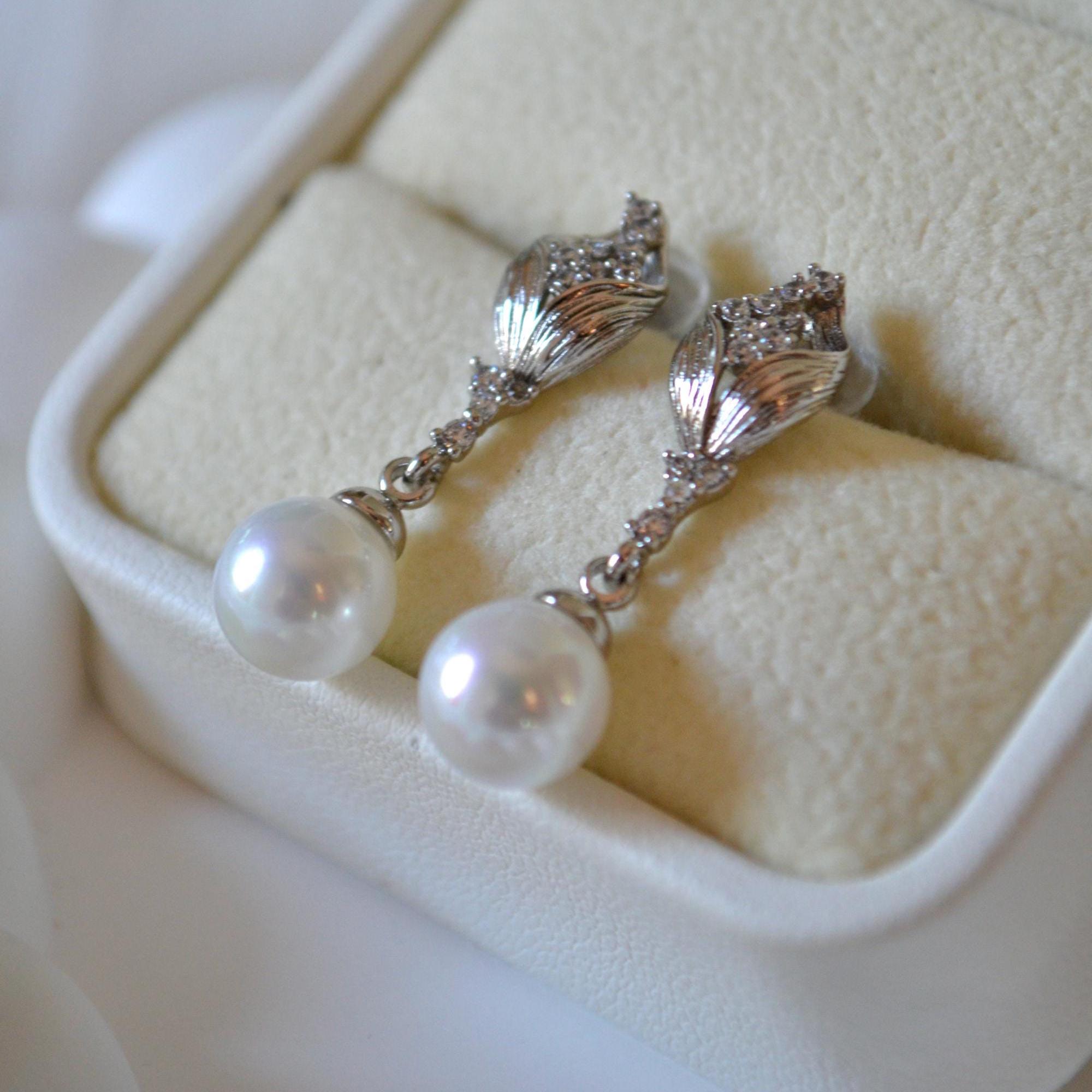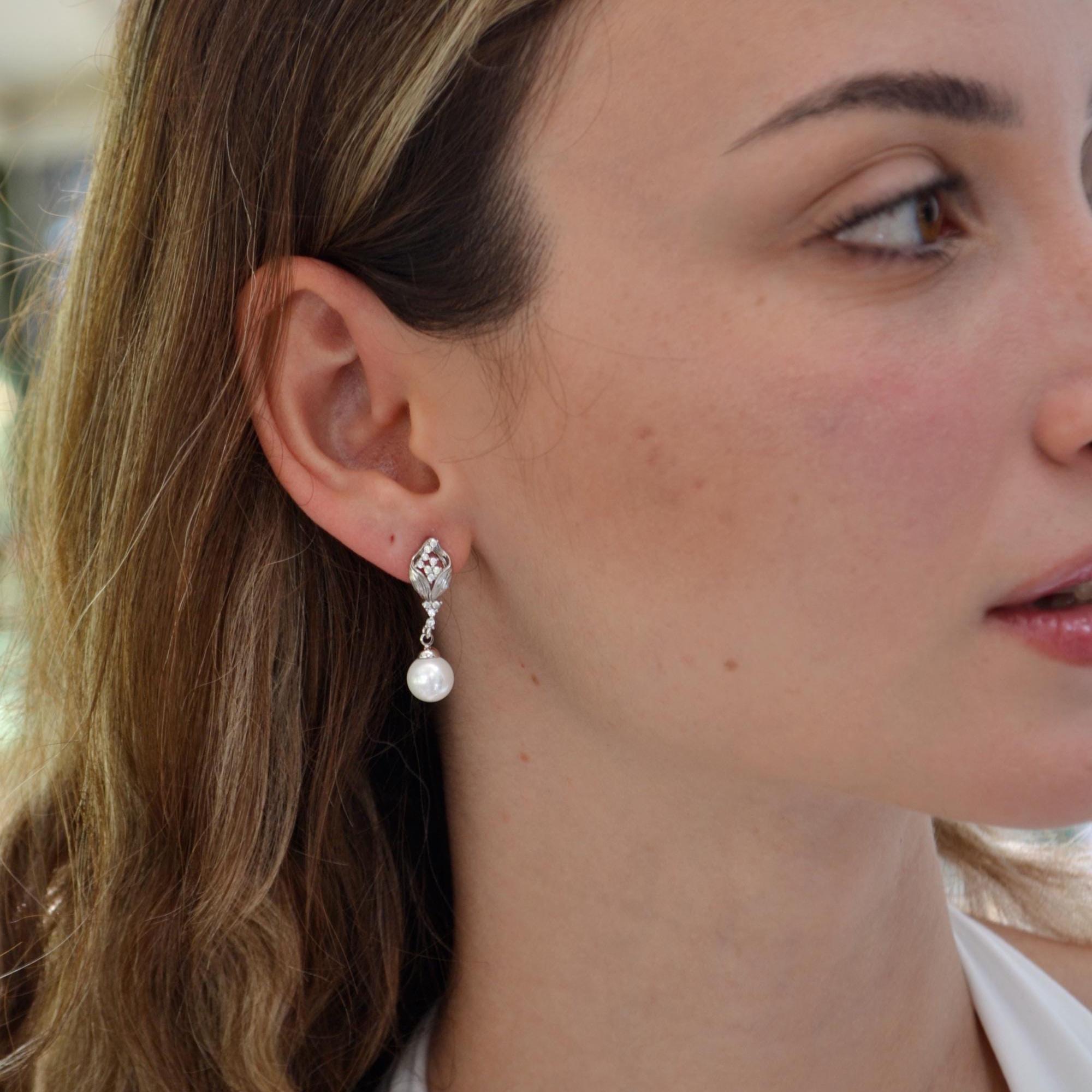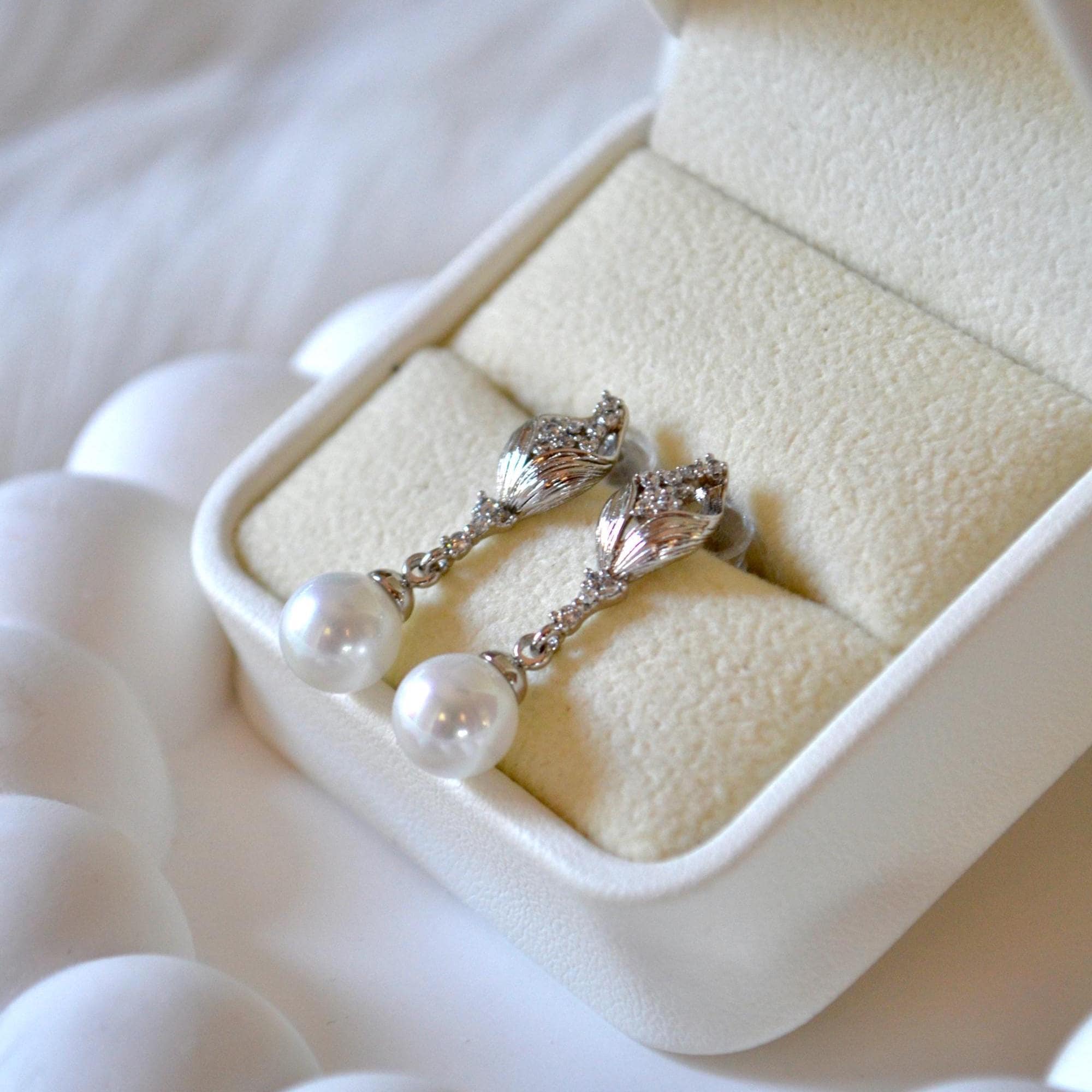Pearl Drop Earrings, Silver Tone Handmade Bridal Jewelry, Classic Wedding Gift for Her
