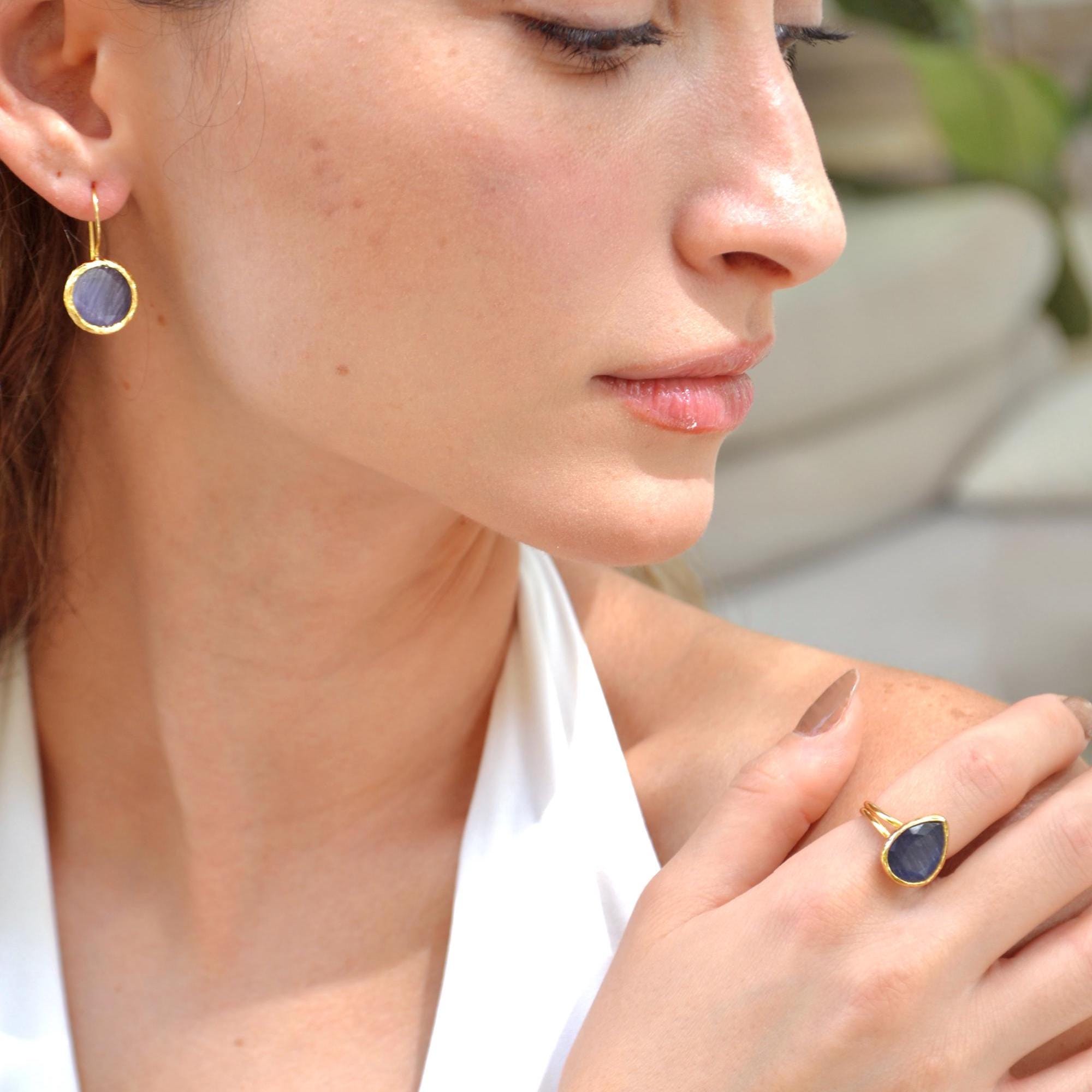 Handcrafted with a faceted gemstone set in a 22K gold-plated bezel, this ring reflects both elegance and natural charm.