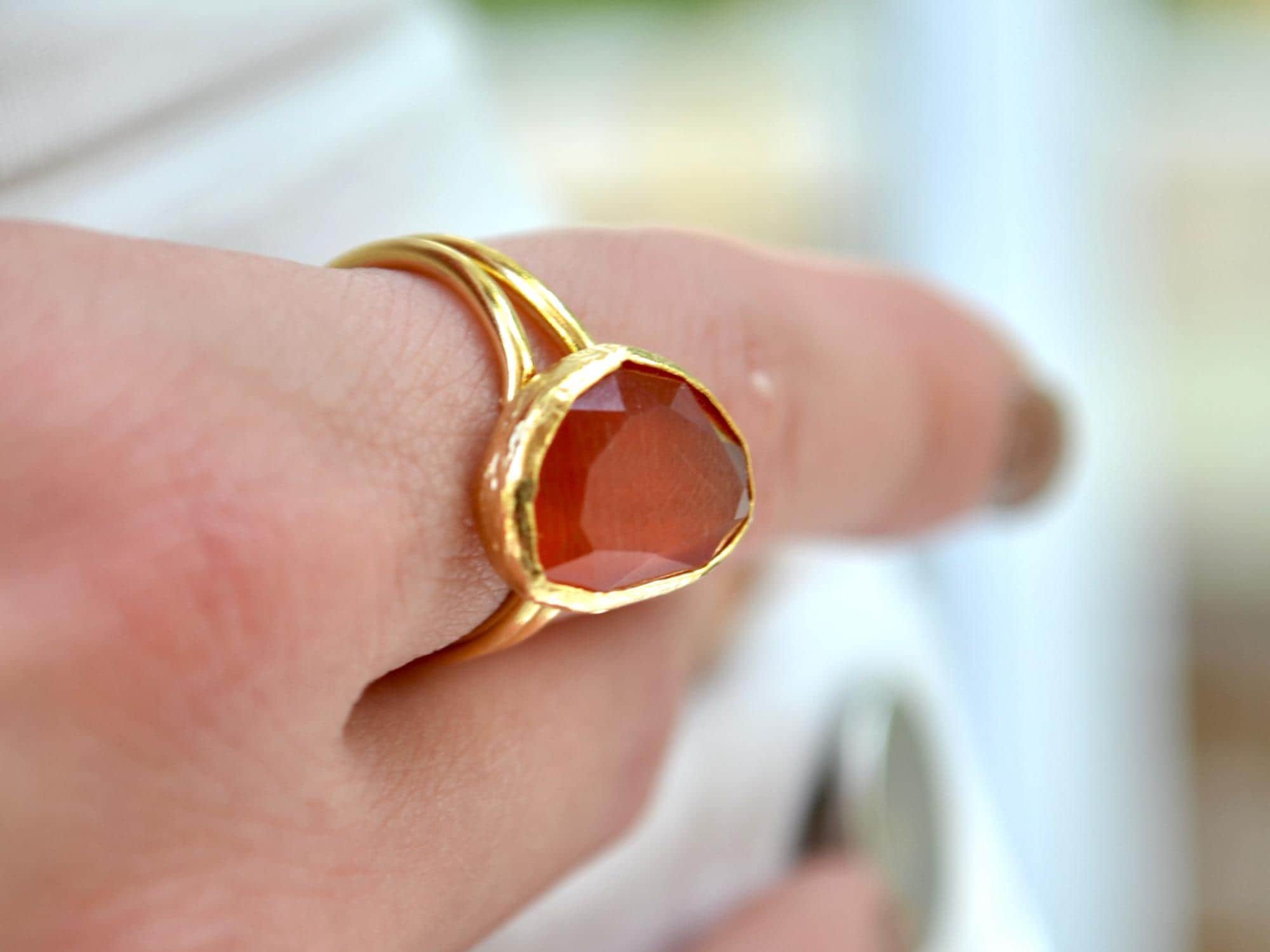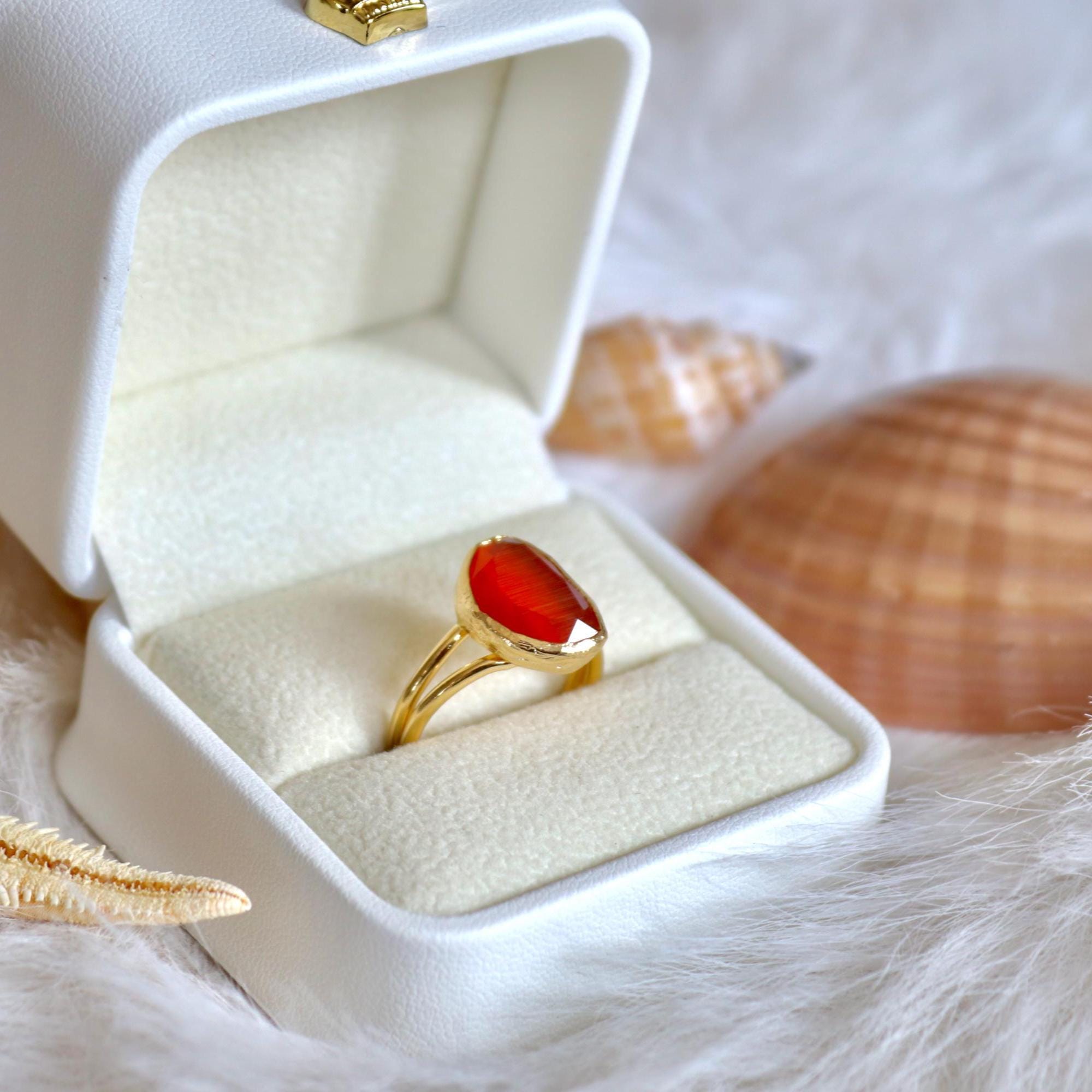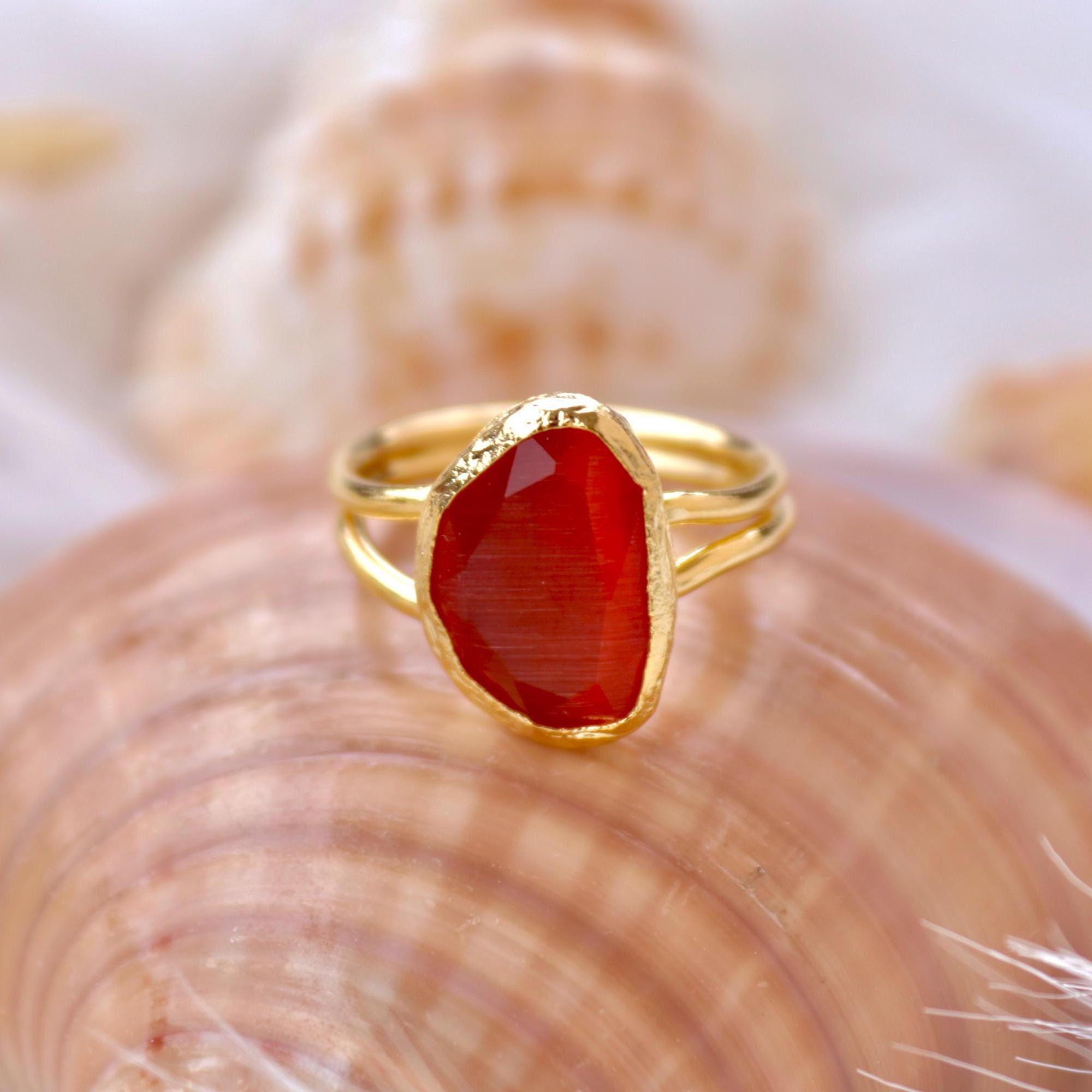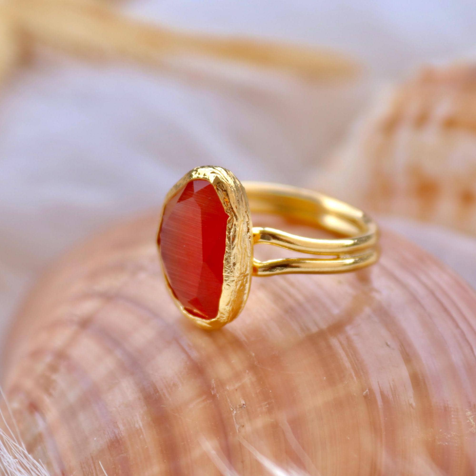 Red Agate Adjustable Ring, Gold Plated Statement Jewelry, Christmas Gift for Her, Bold Red Stone