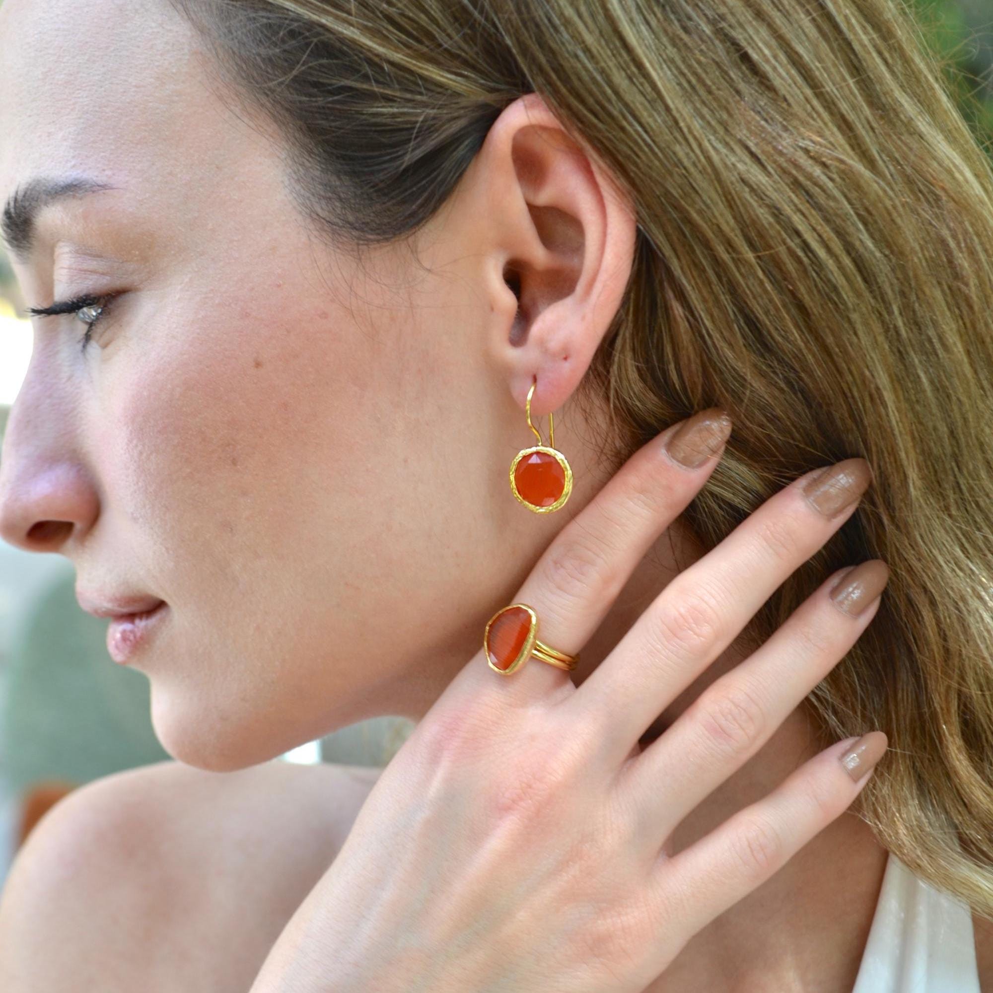 Handcrafted with a warm red gemstone and set in gold-plated brass, it’s the perfect piece for holiday celebrations or for anyone who loves strong, radiant jewelry all year round. ❤️✨