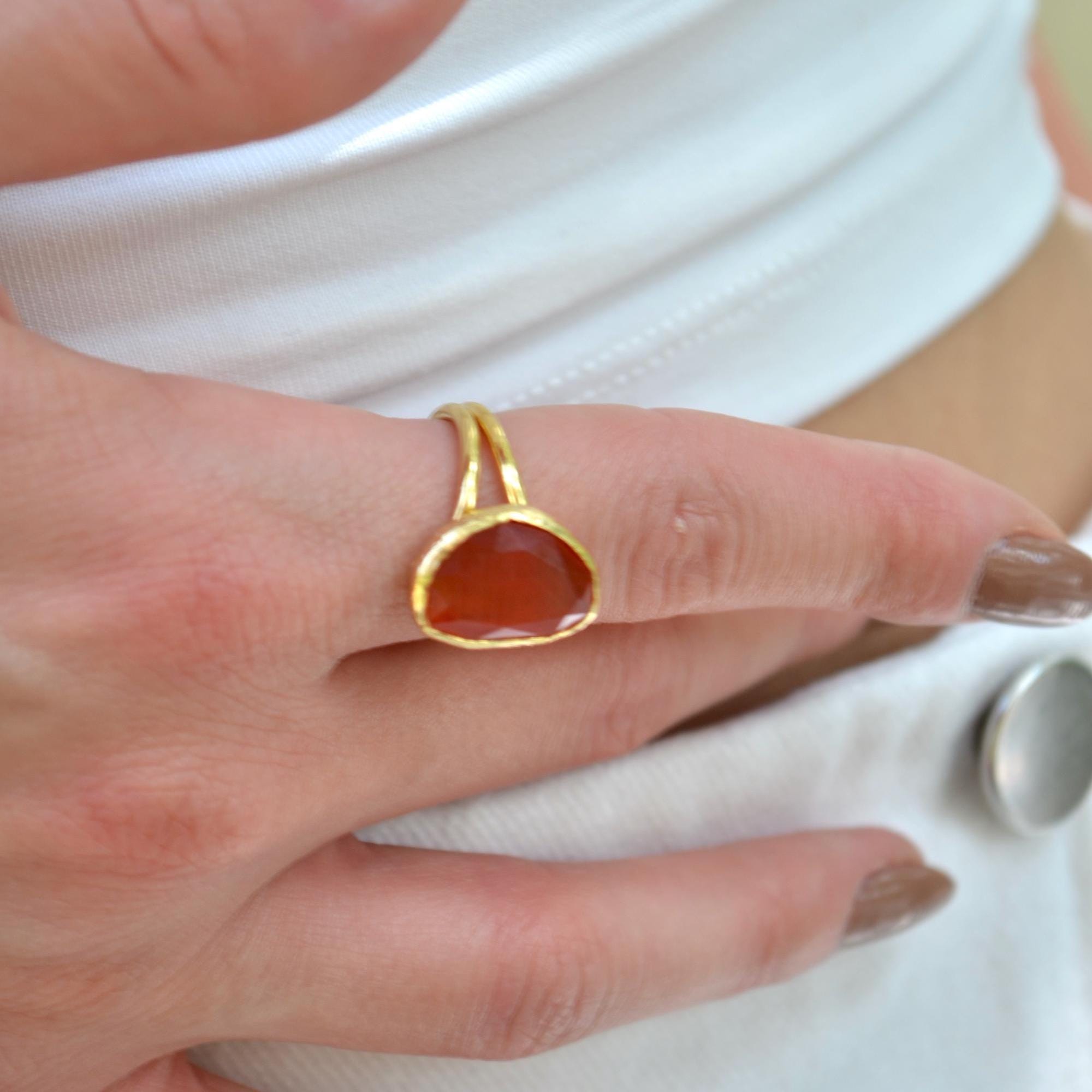 dd a bold and festive touch to your style with this stunning Red Agate adjustable ring.