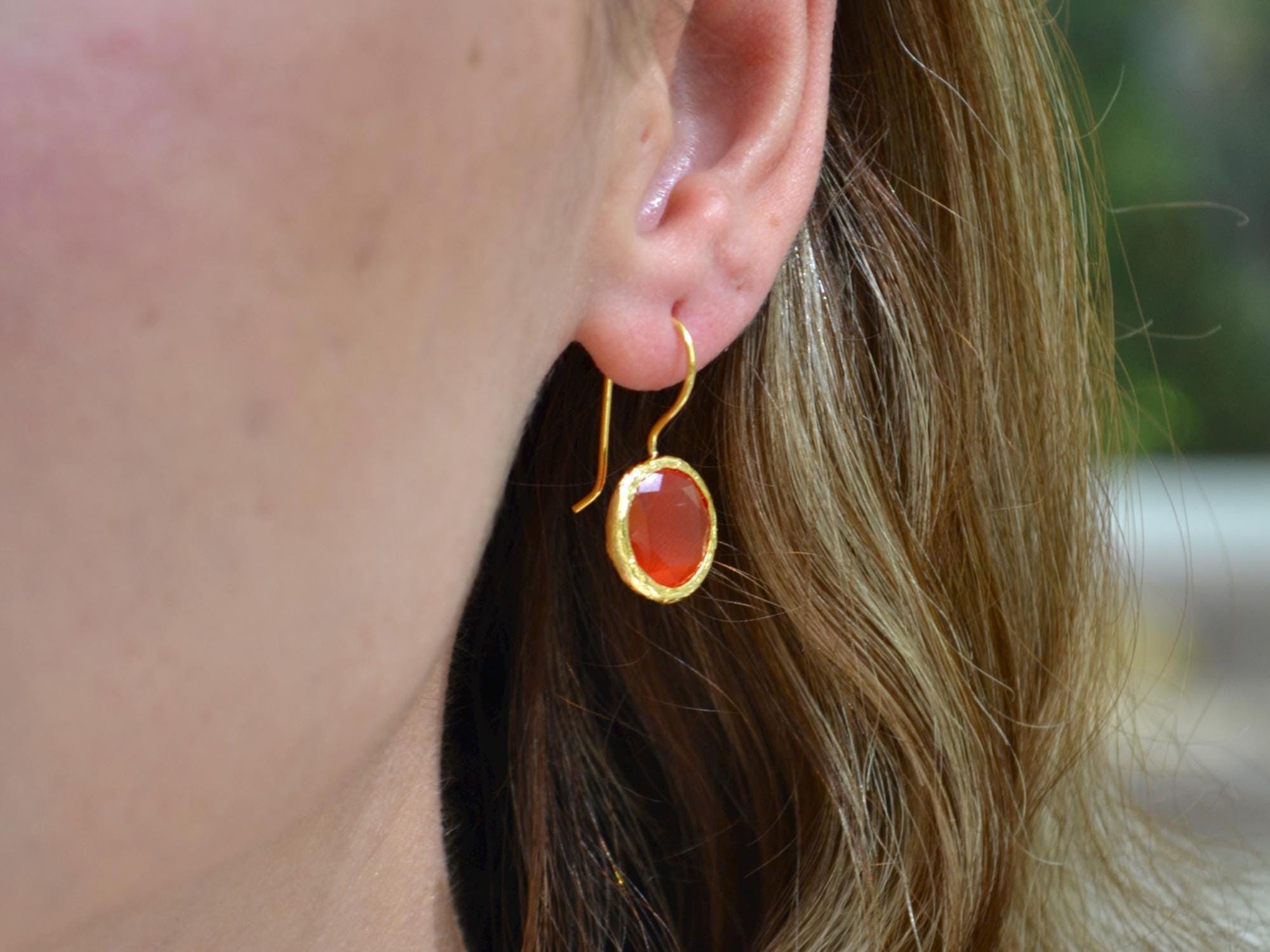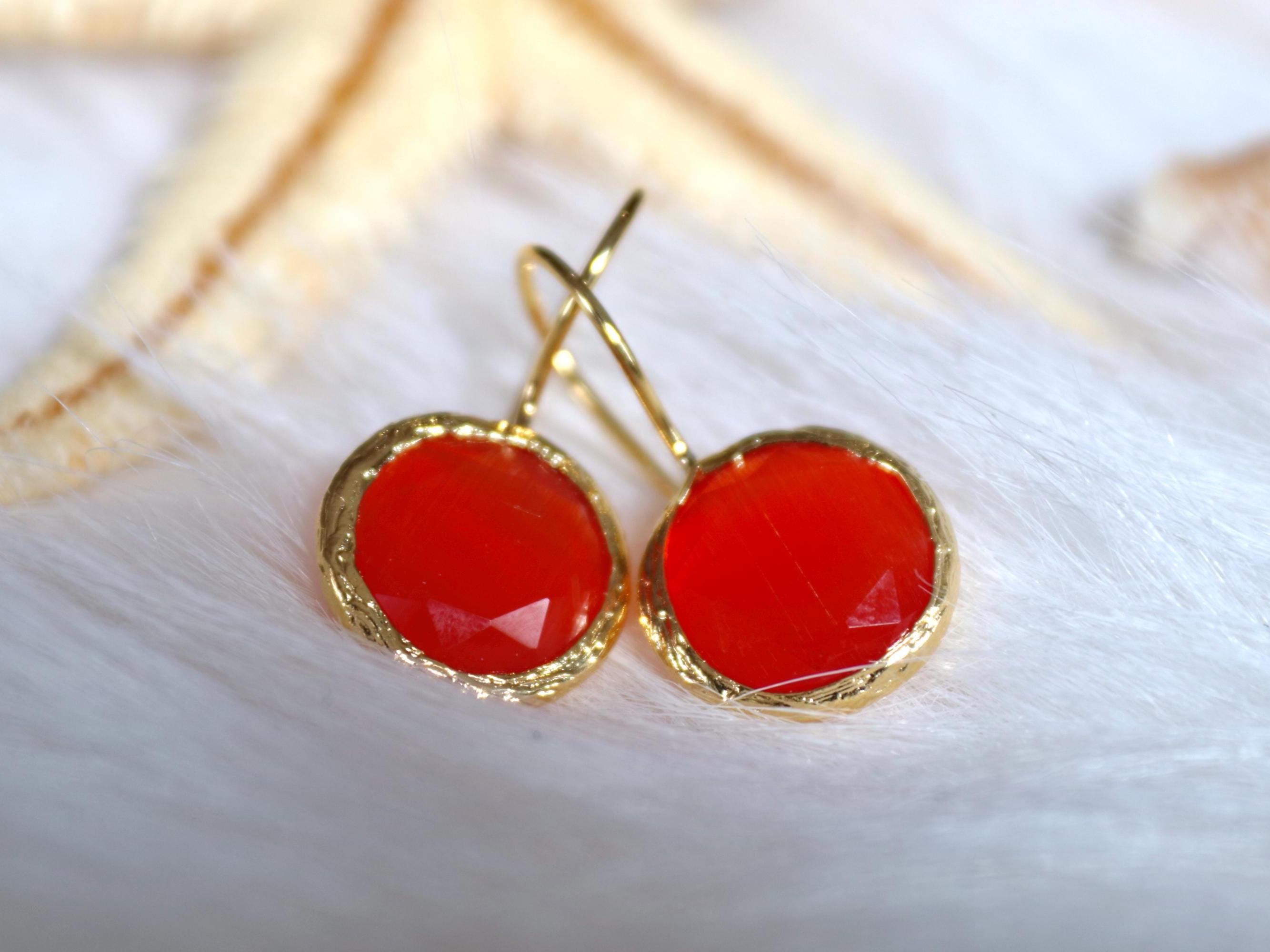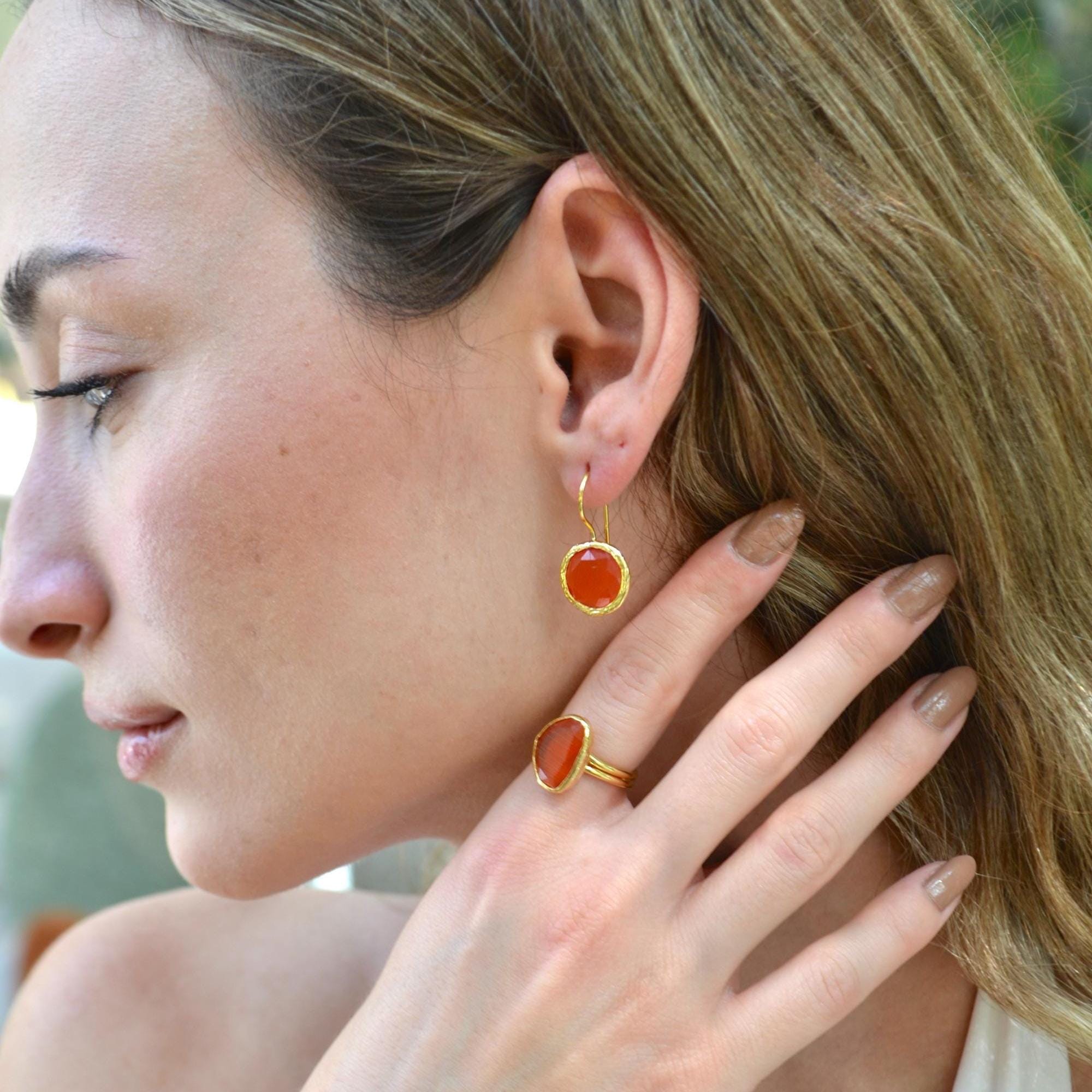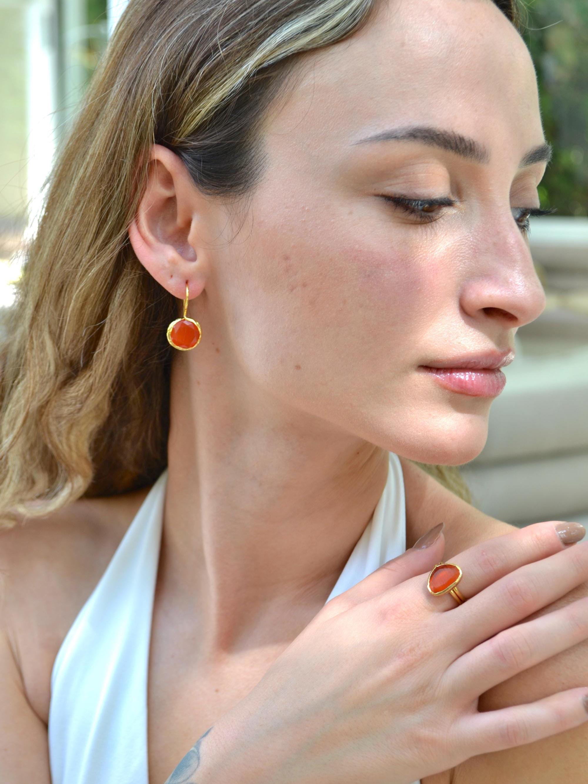 Handcrafted with a bold, warm red natural stone and finished in gold-plated brass, each piece adds a touch of glamour whether youâre celebrating Christmas, New Yearâs Eve, or simply elevating your everyday style.