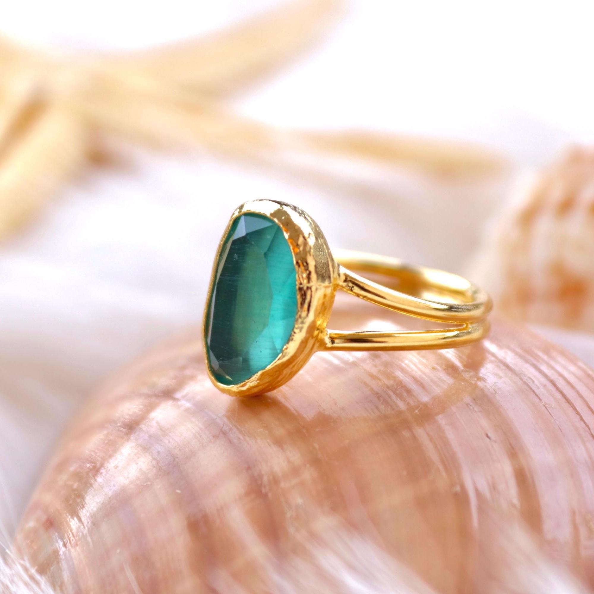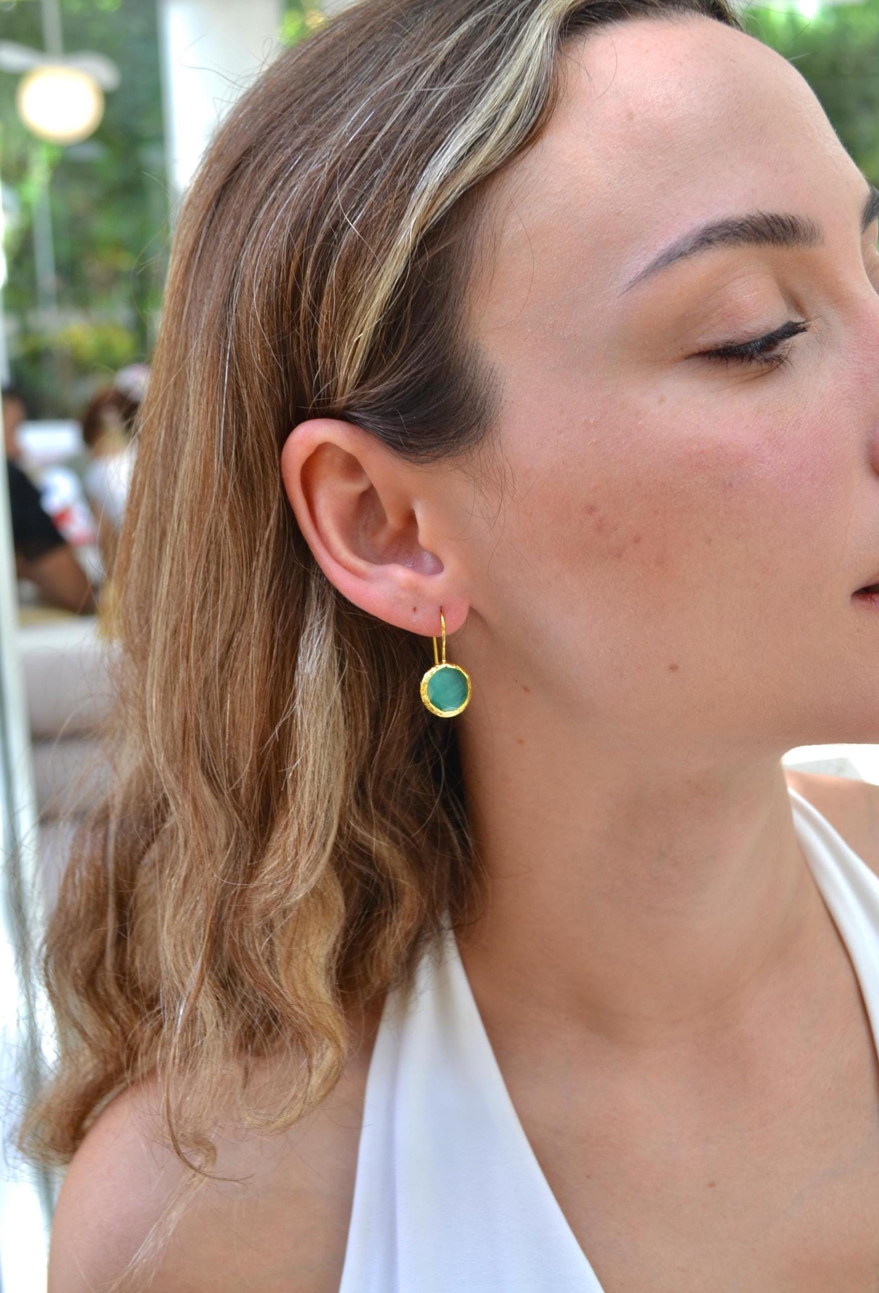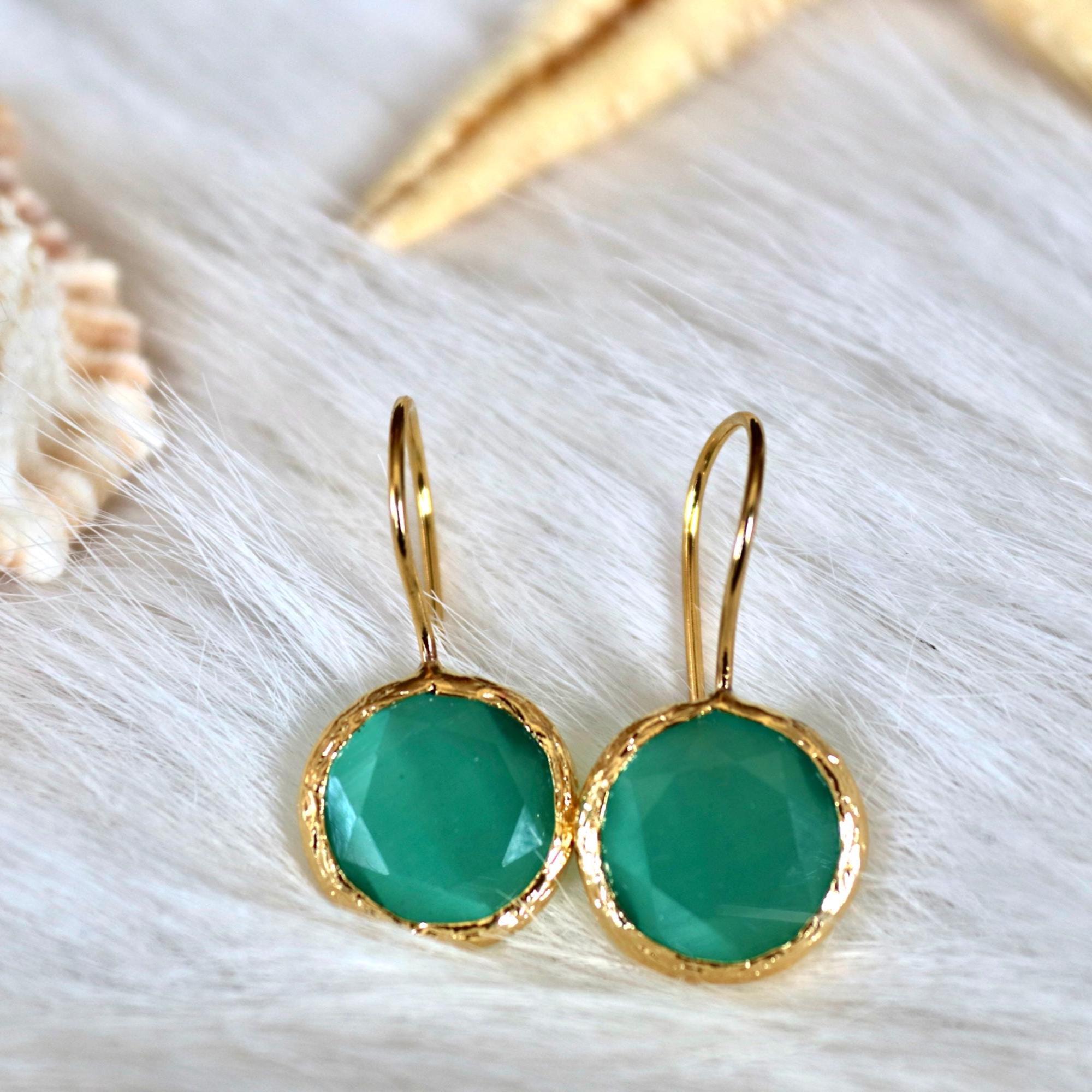 Green Onyx Earrings and Adjustable Ring, Gold Plated Minimalist Jewelry , Gift for Her