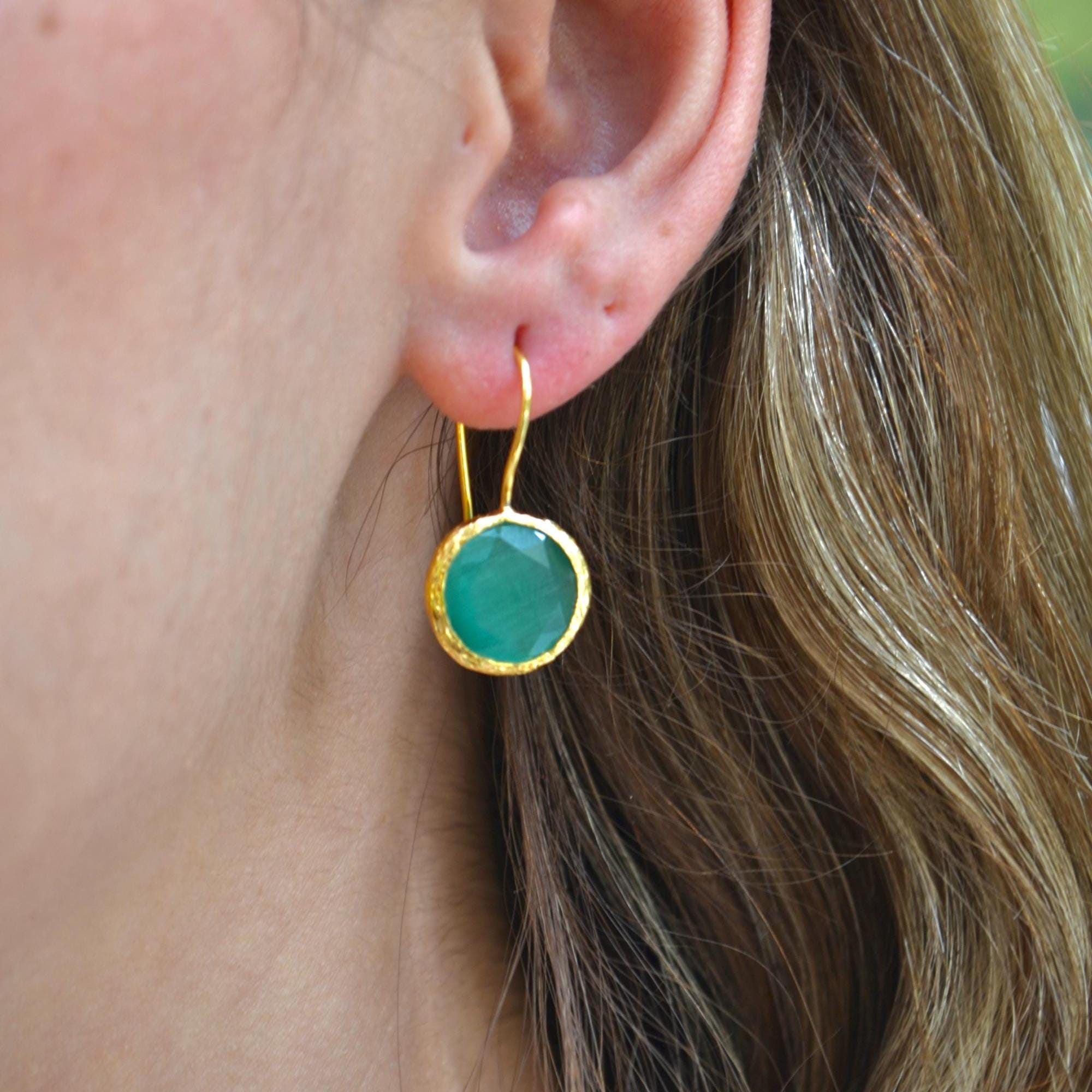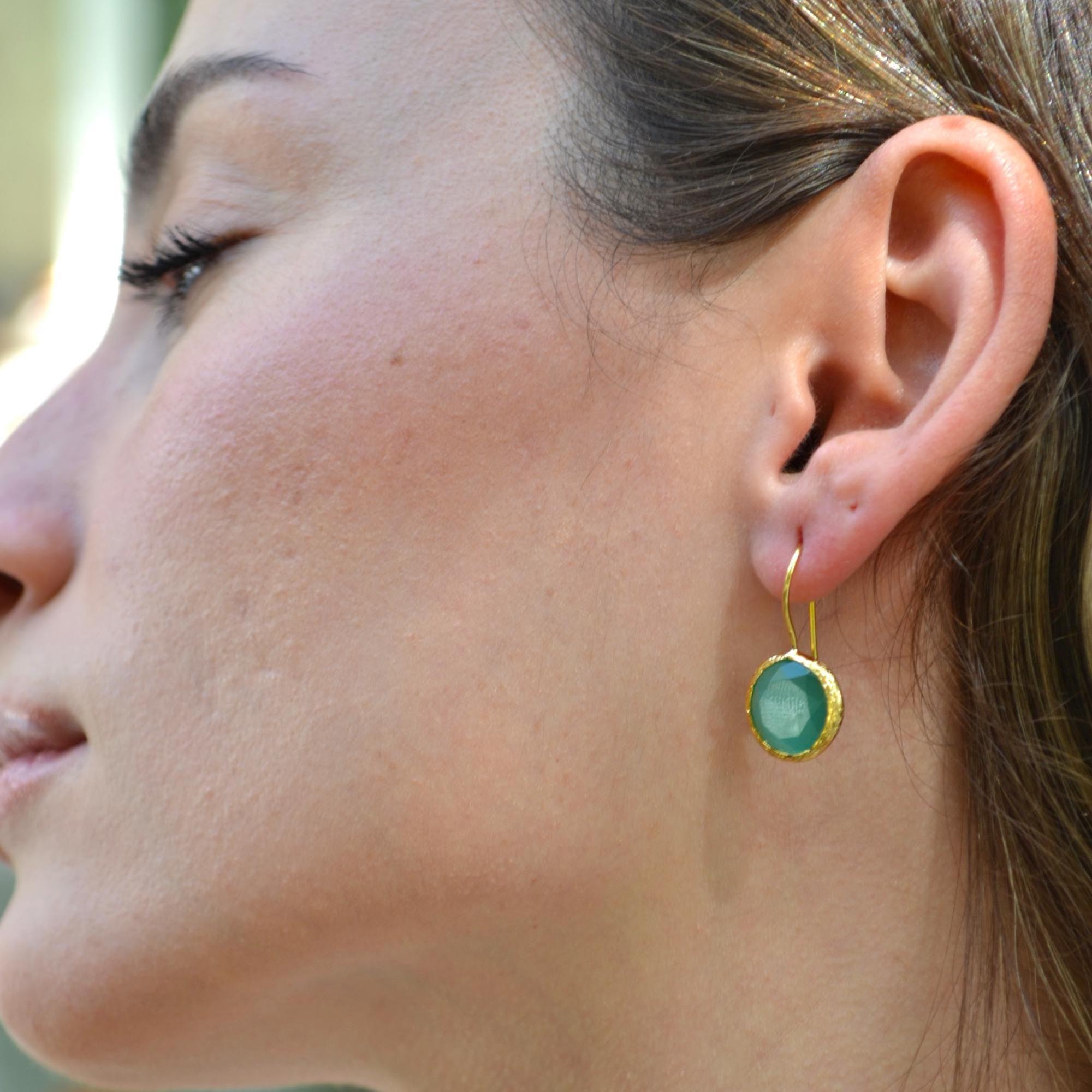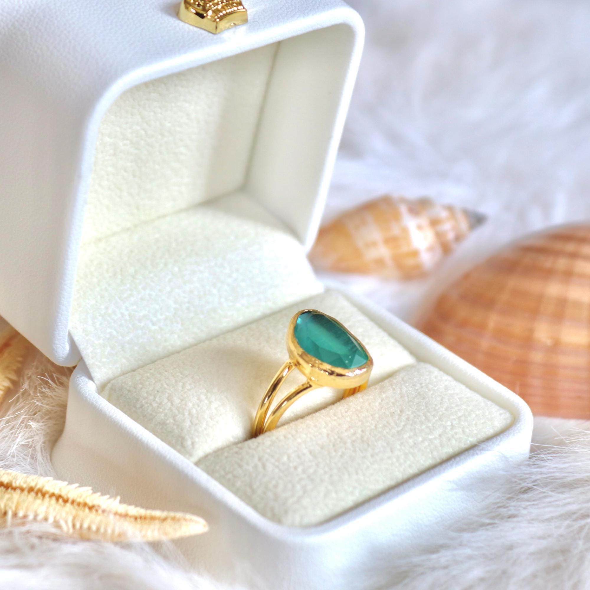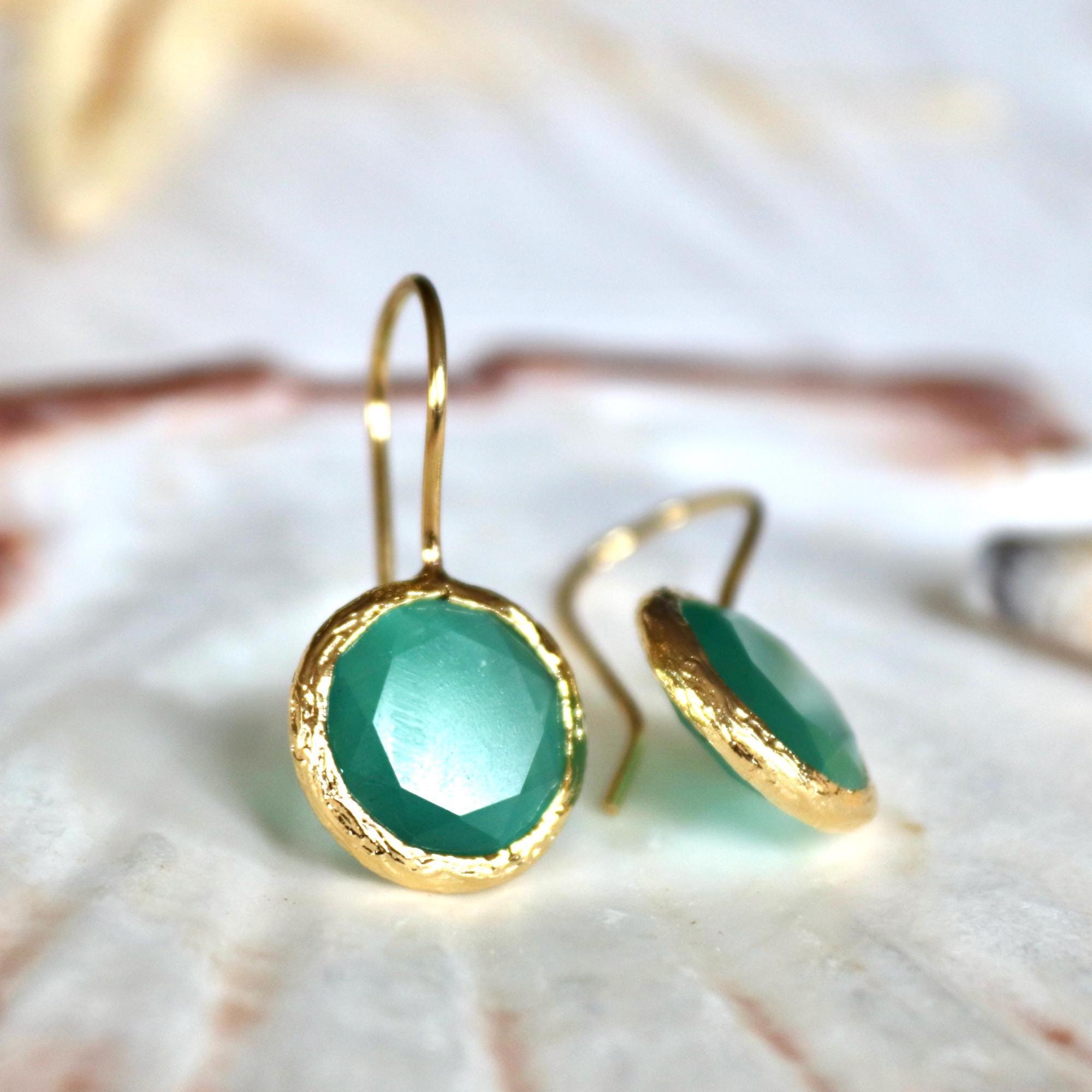 Green Onyx Earrings and Adjustable Ring, Gold Plated Minimalist Jewelry , Gift for Her