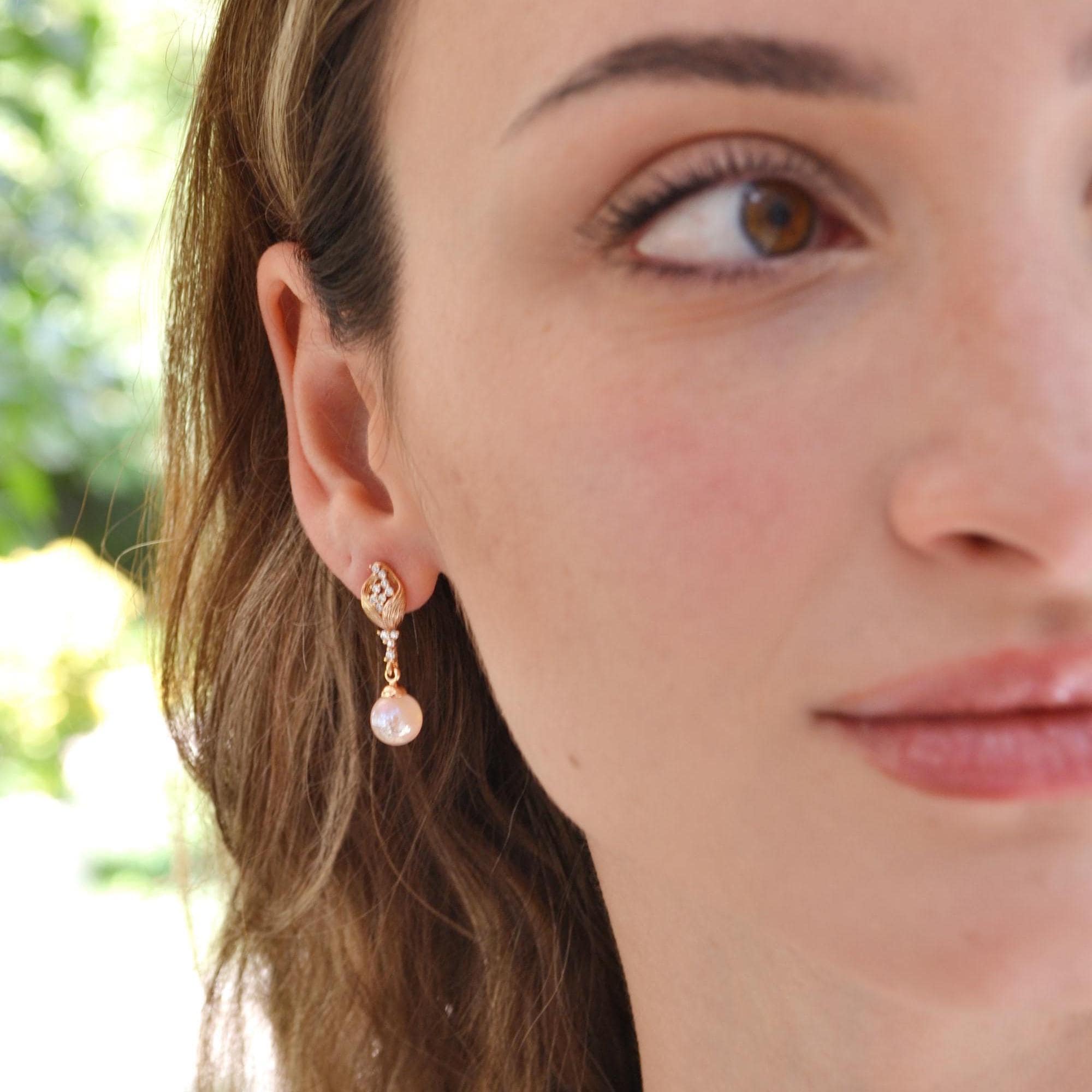 Add a soft, romantic glow to your look with these iridescent drop earrings.