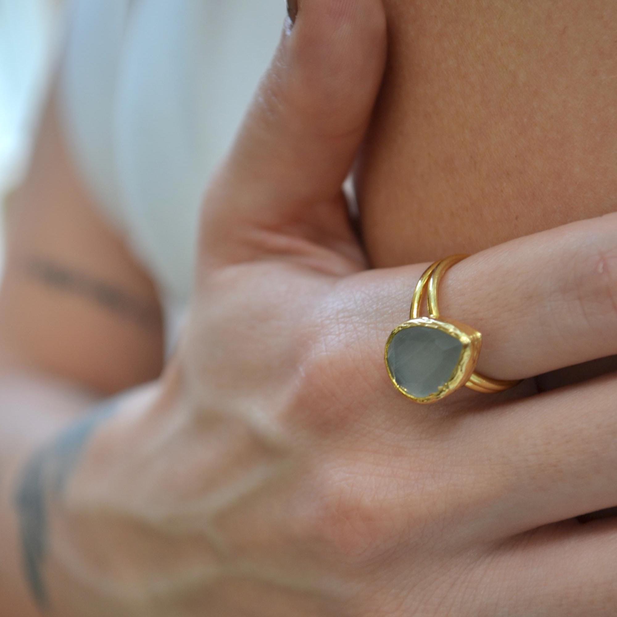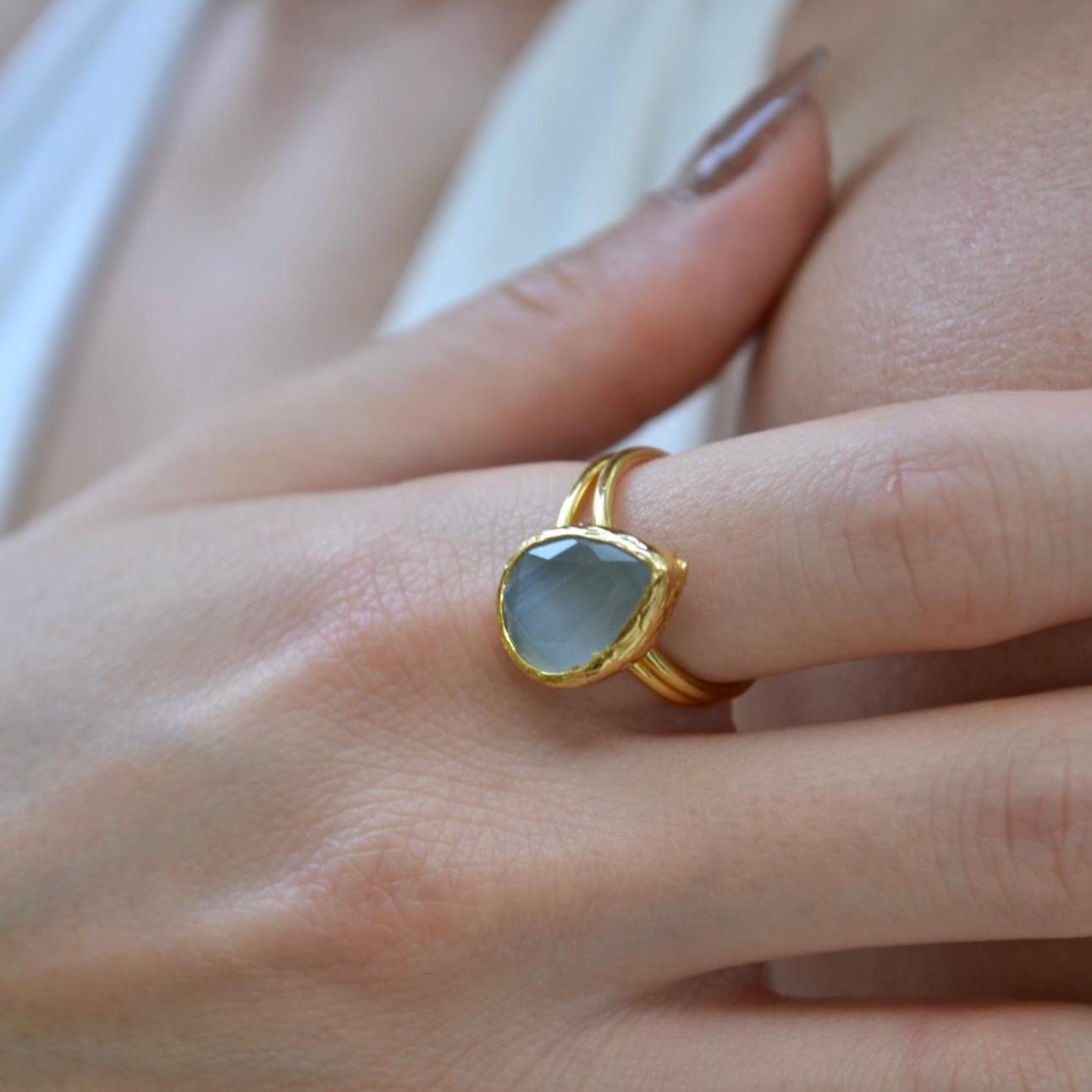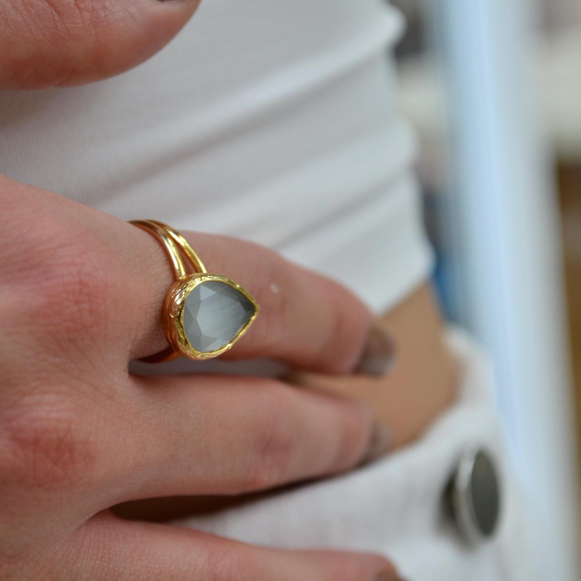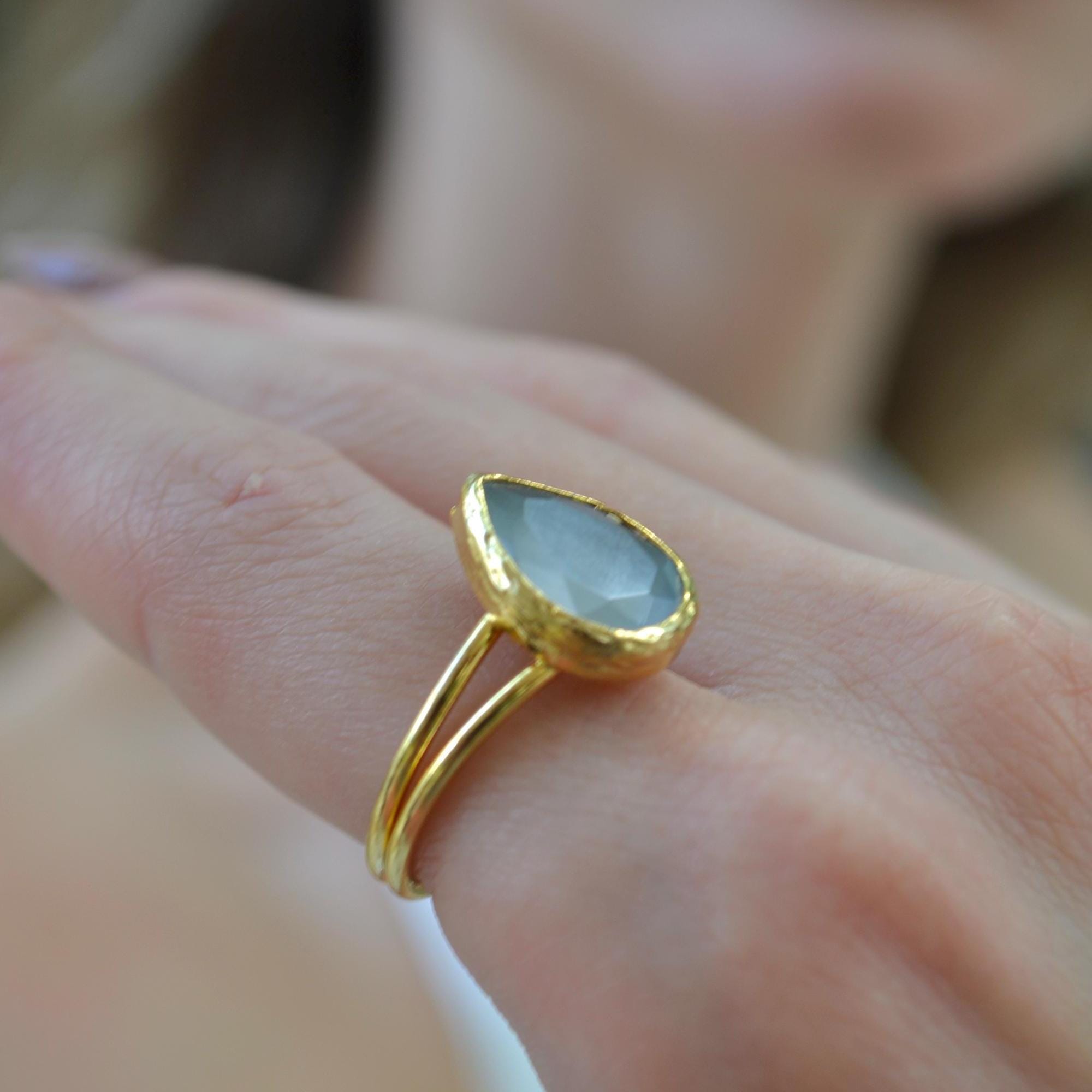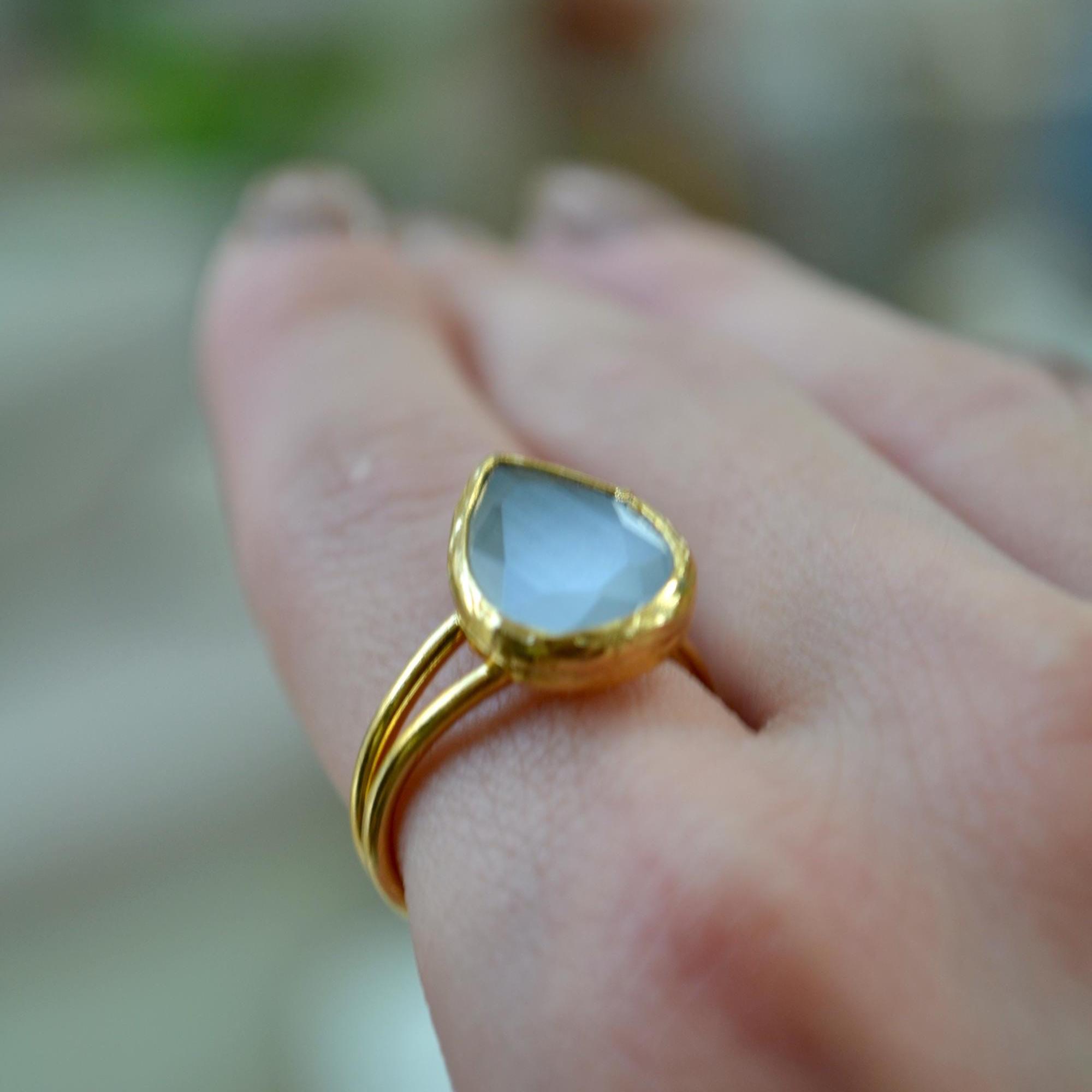 Moonstone Teardrop Ring, Adjustable Gold Plated Band, Natural Gemstone Jewelry Gift for Her