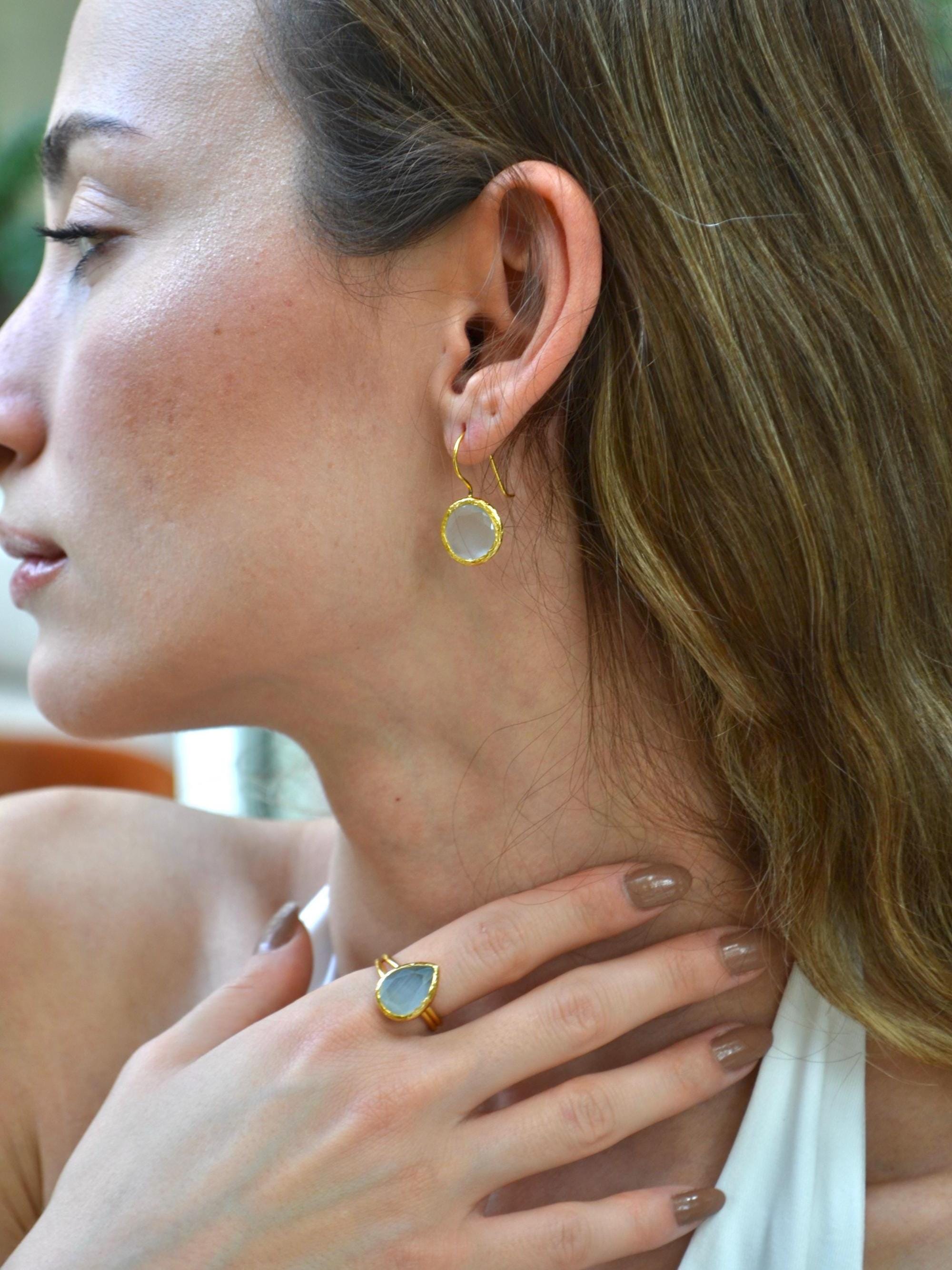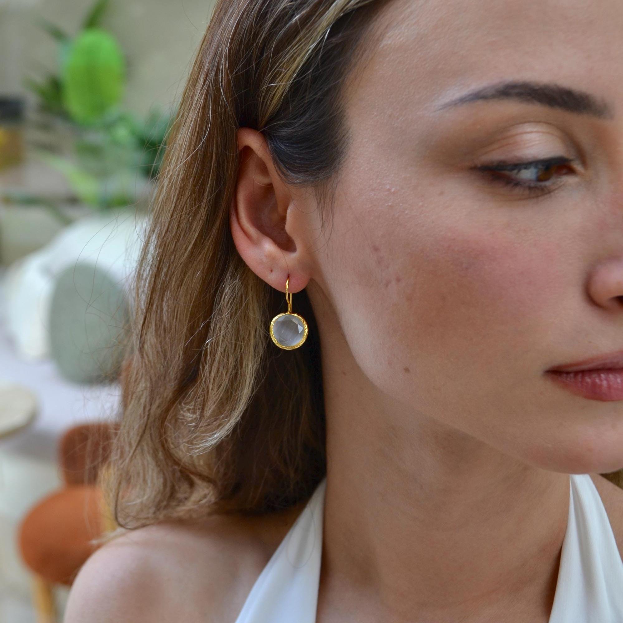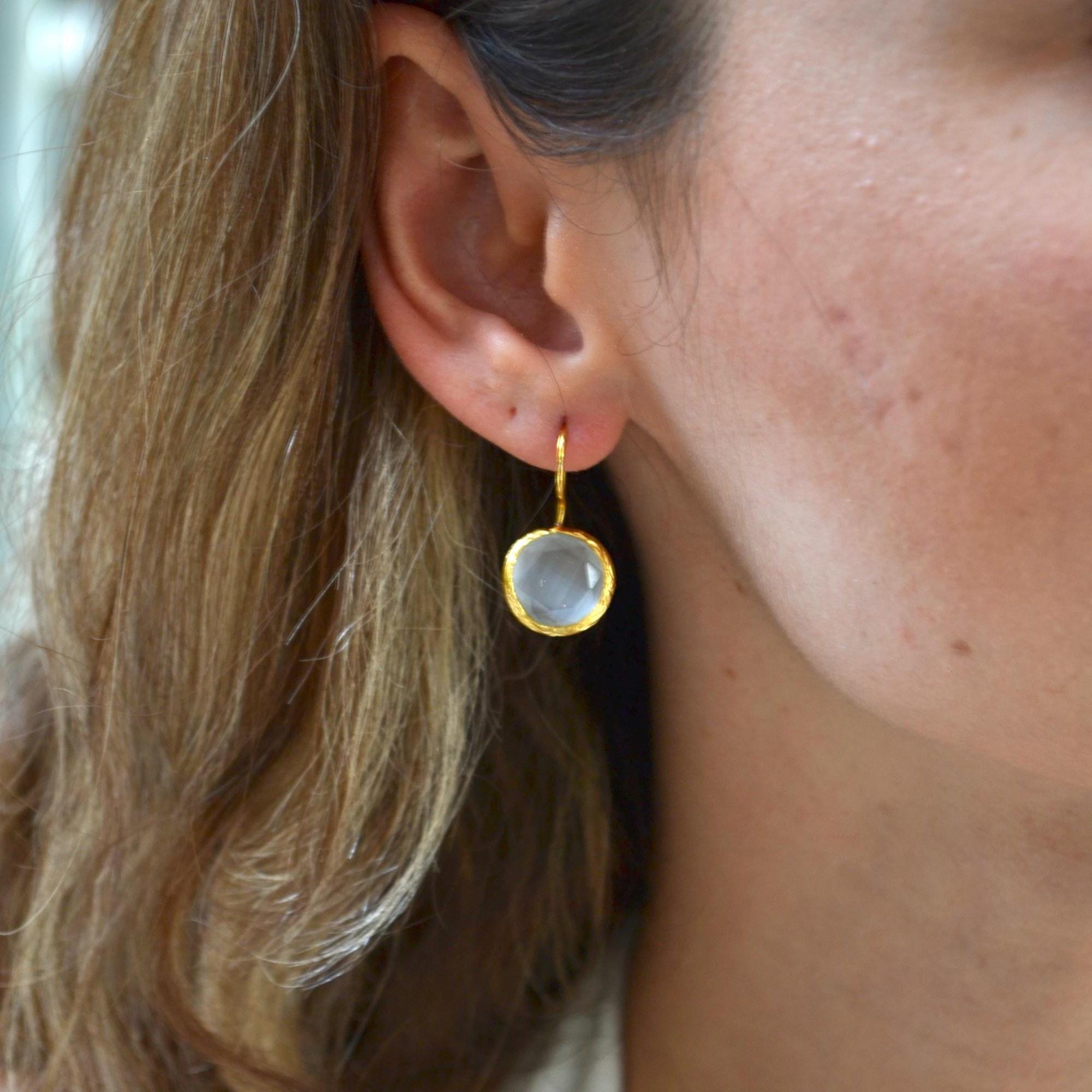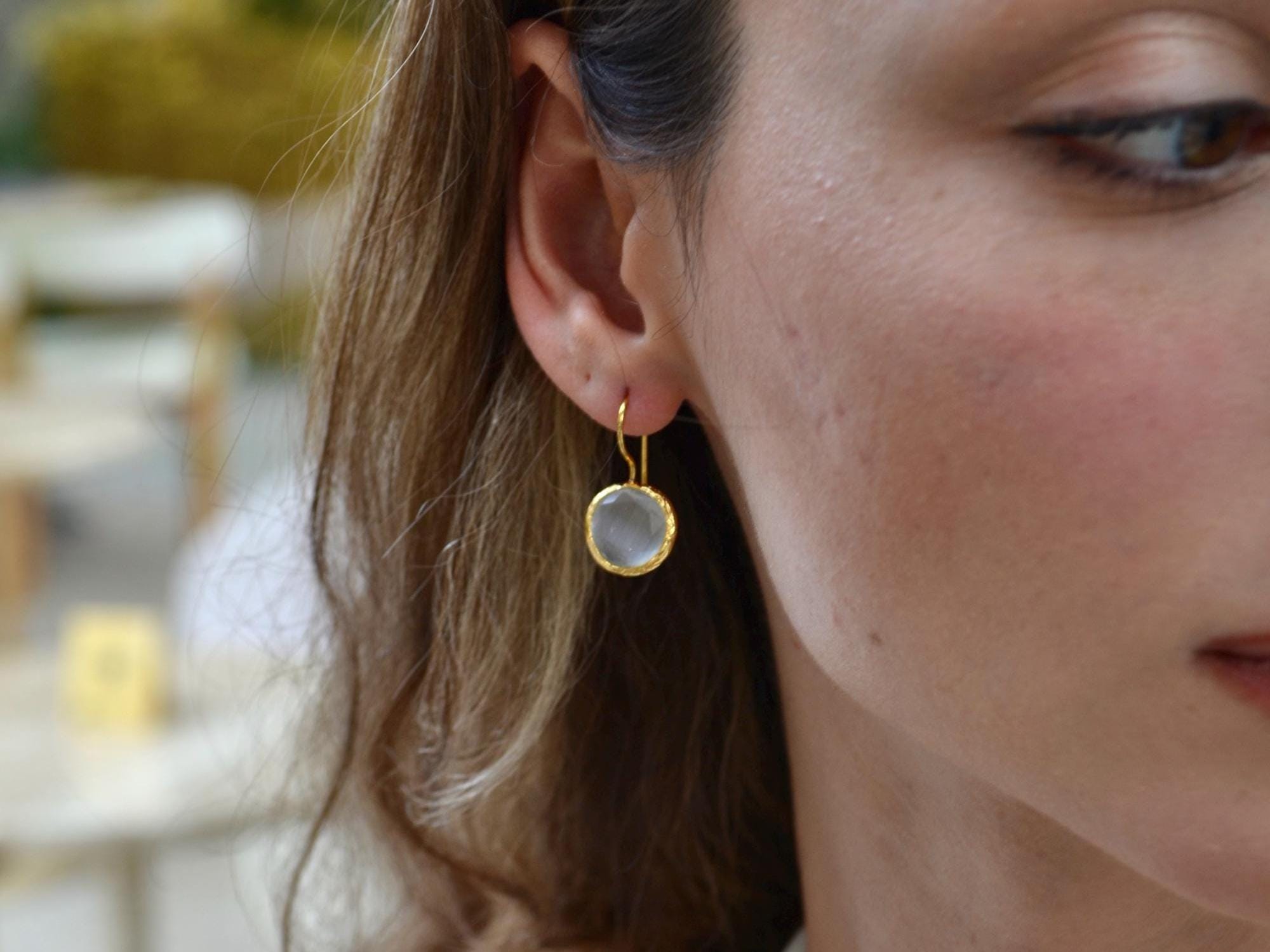 These elegant drop earrings feature genuine moonstone with a soft, luminous glow that shifts beautifully in the light.
