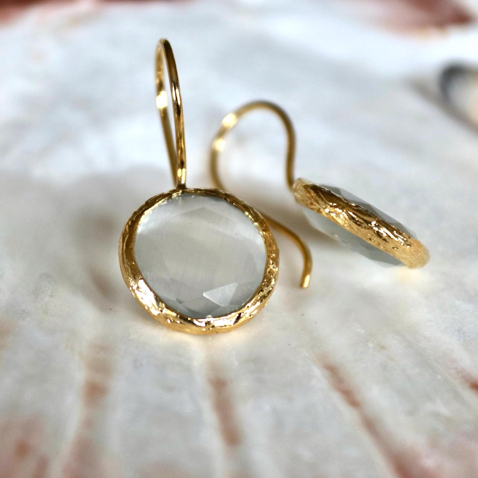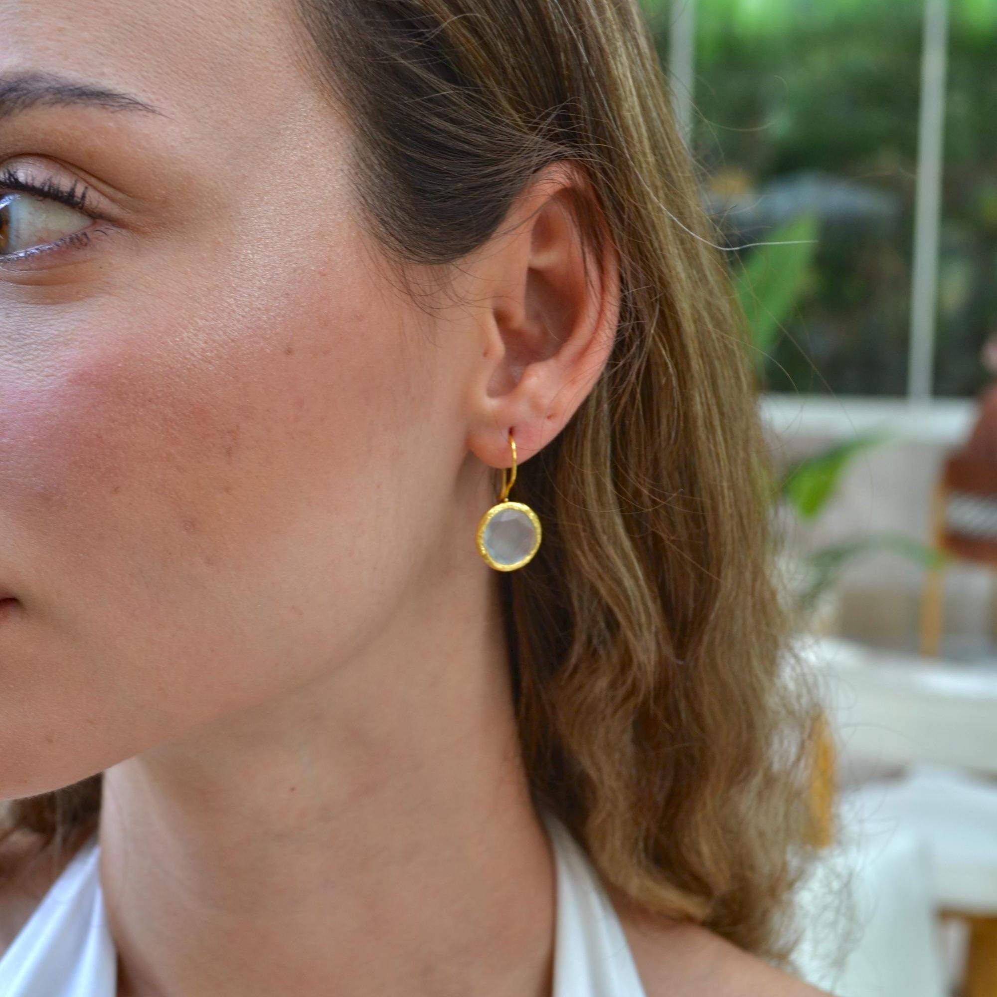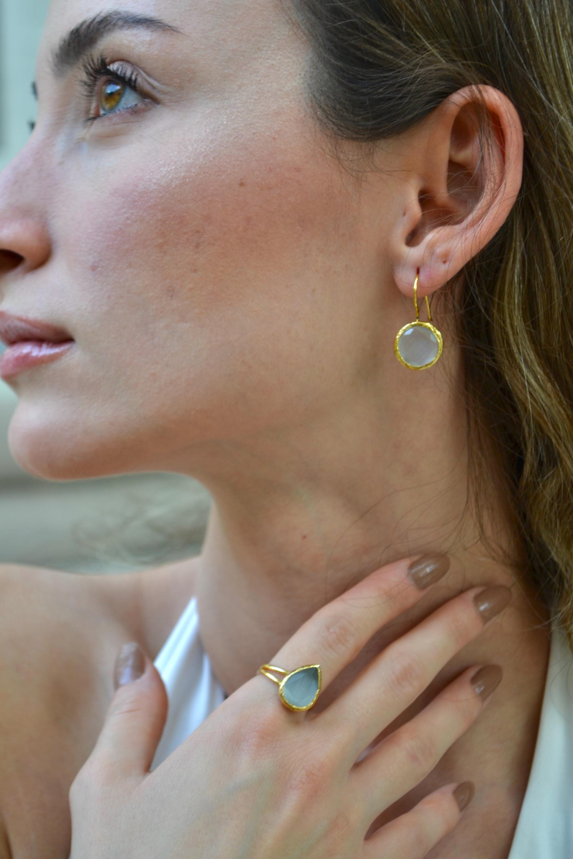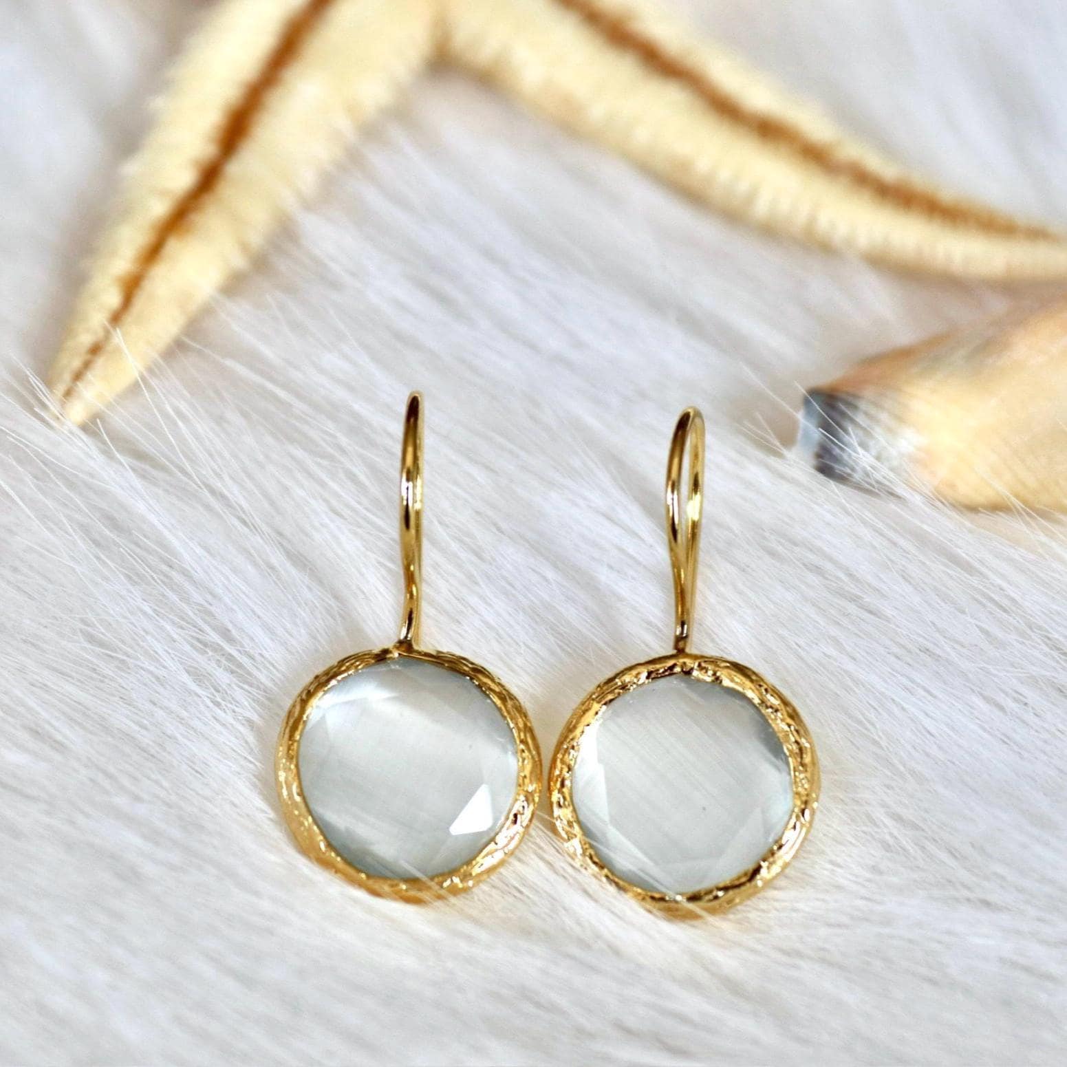 These elegant drop earrings feature genuine moonstone with a soft, luminous glow that shifts beautifully in the light.