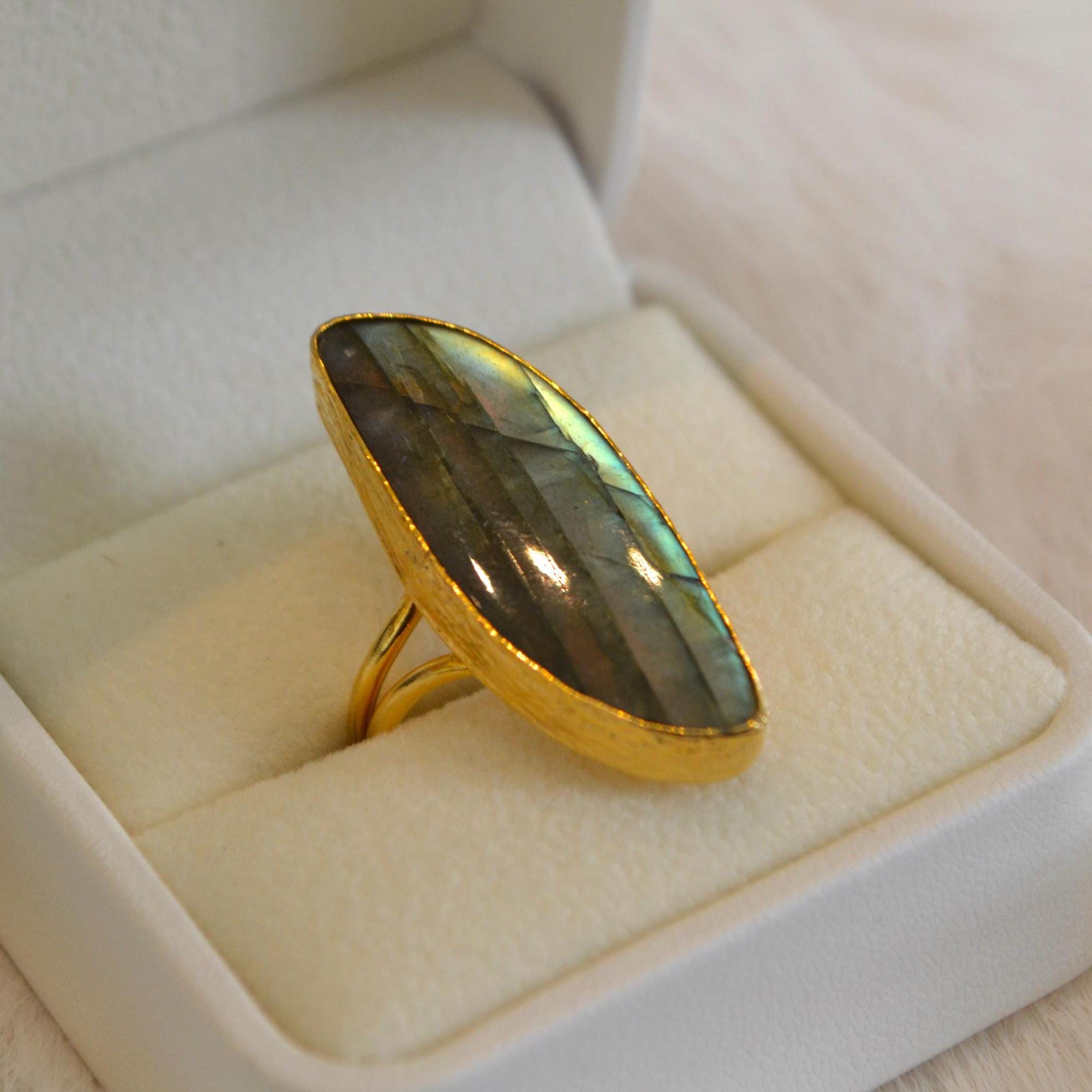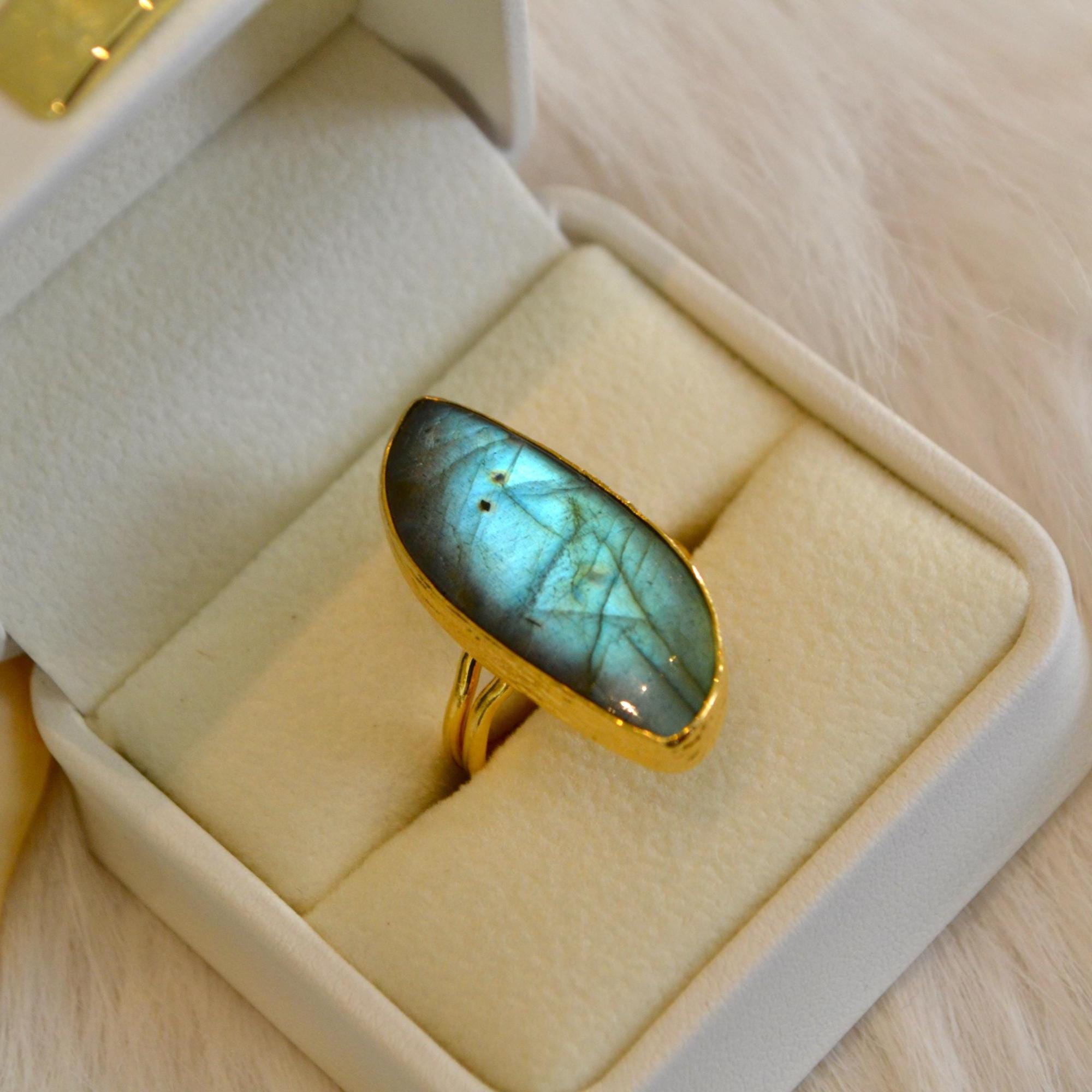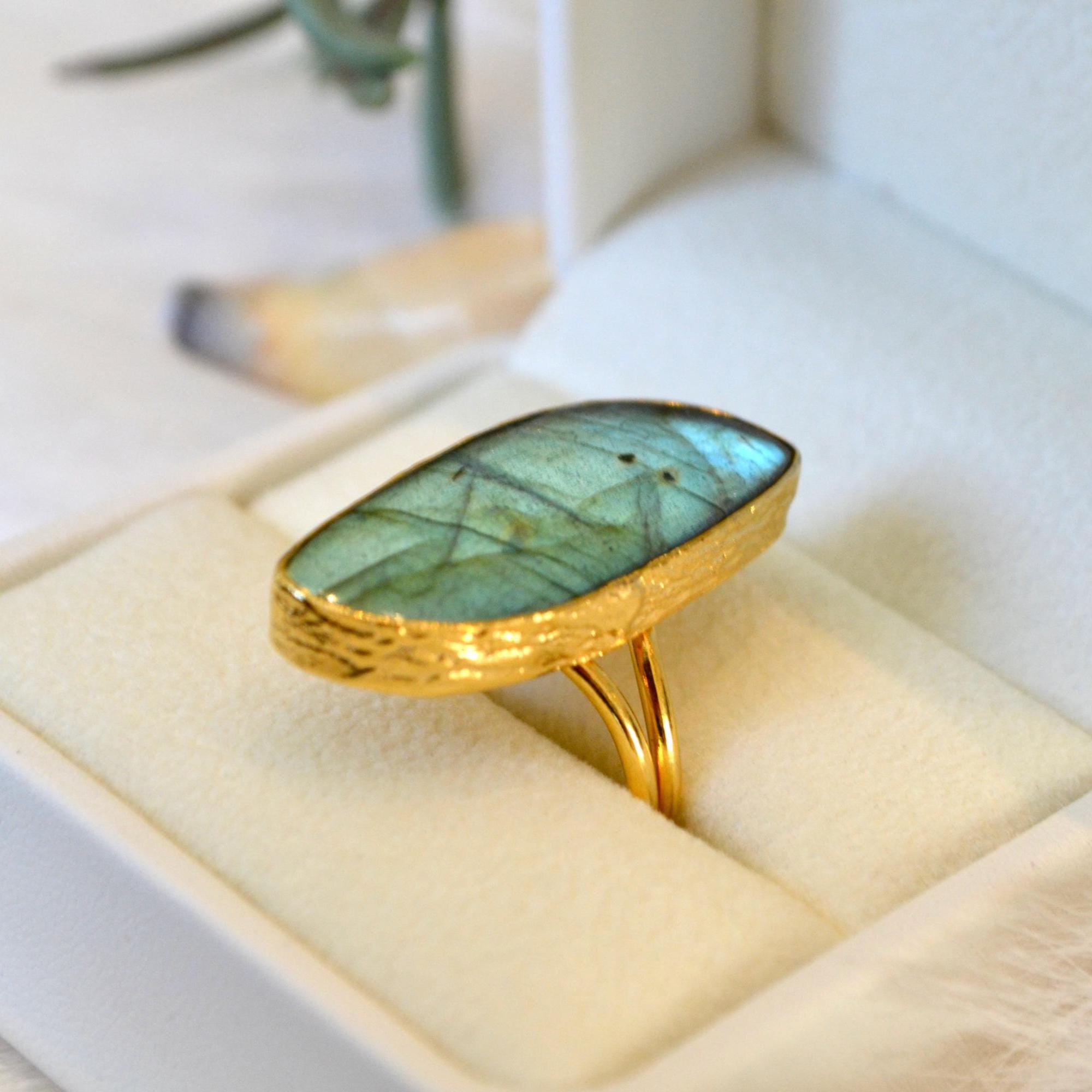 Labradorite Gold Ring Large Labradorite Statement Ring Natural Labradorite Gemstone Ring Handmade Gold Jewelry Gift for Her