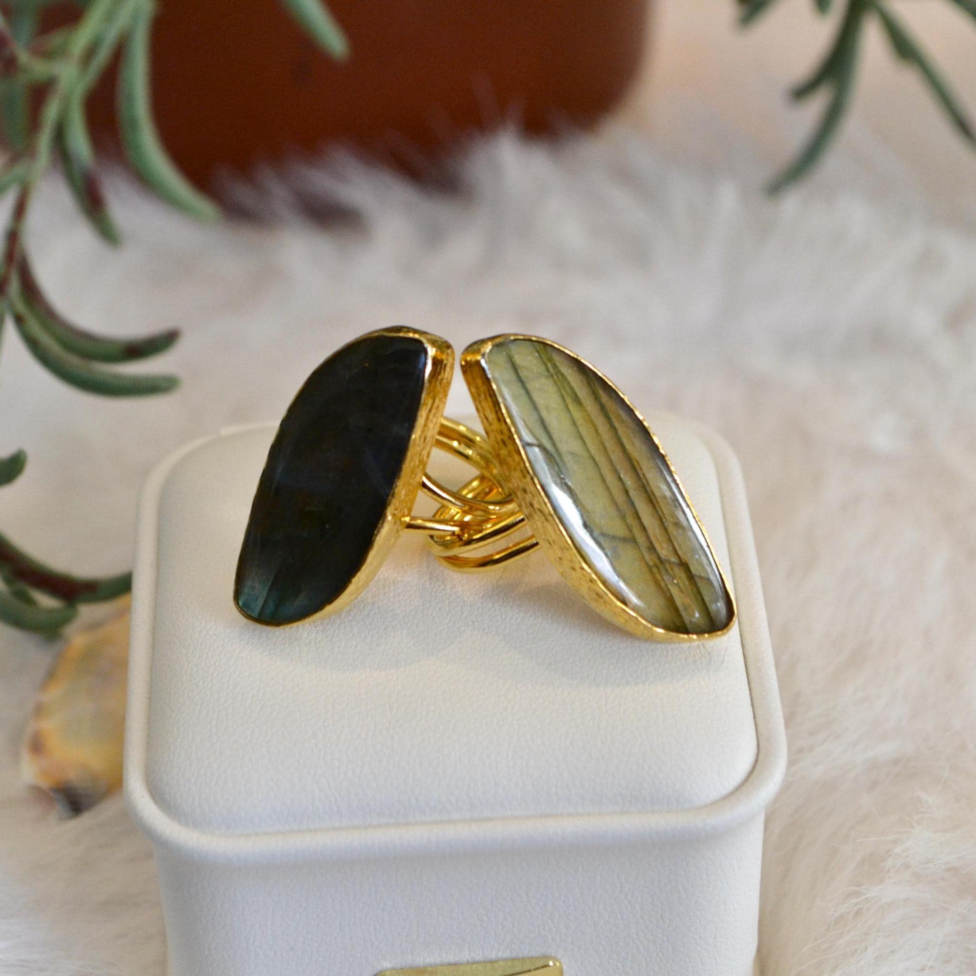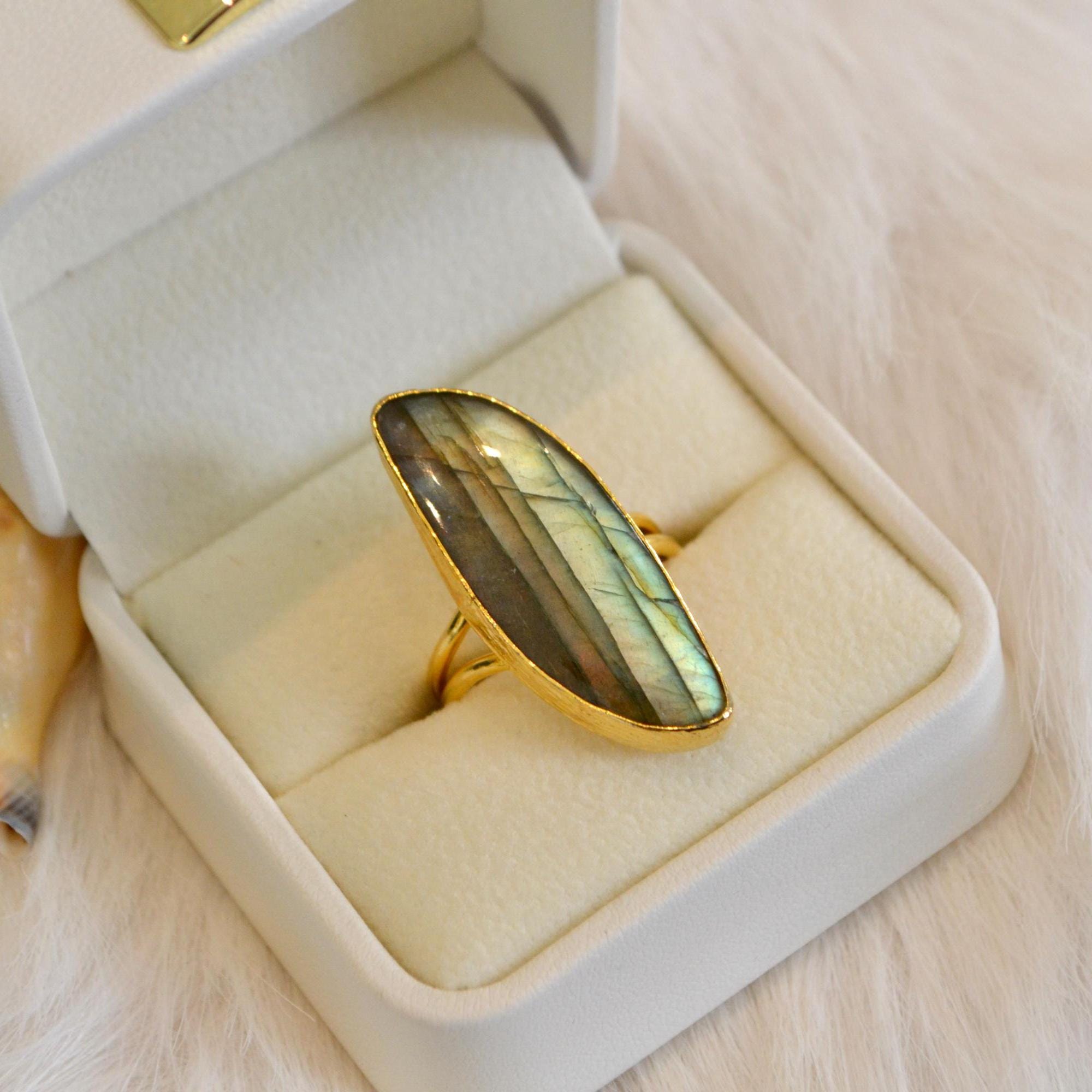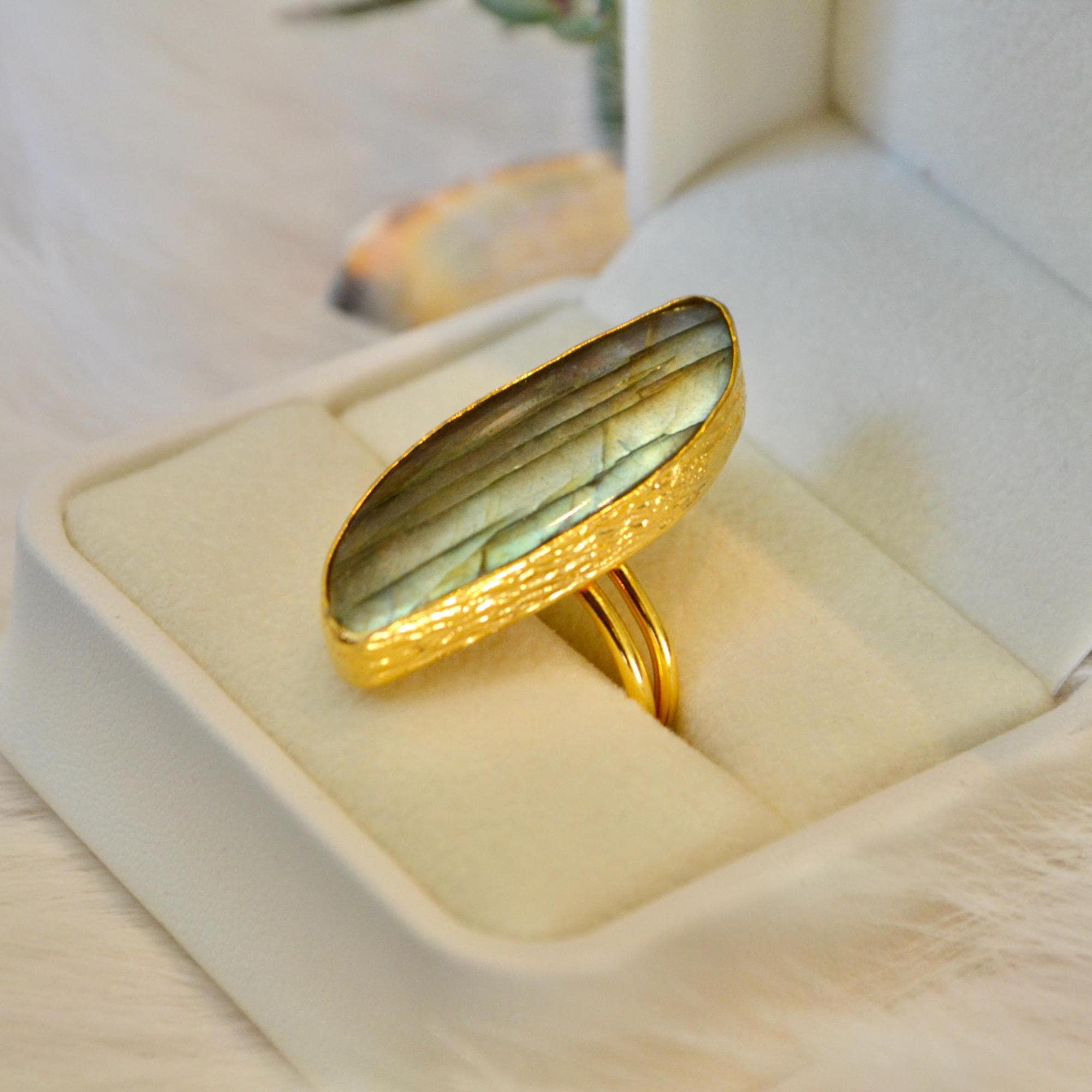Labradorite Gold Ring Large Labradorite Statement Ring Natural Labradorite Gemstone Ring Handmade Gold Jewelry Gift for Her