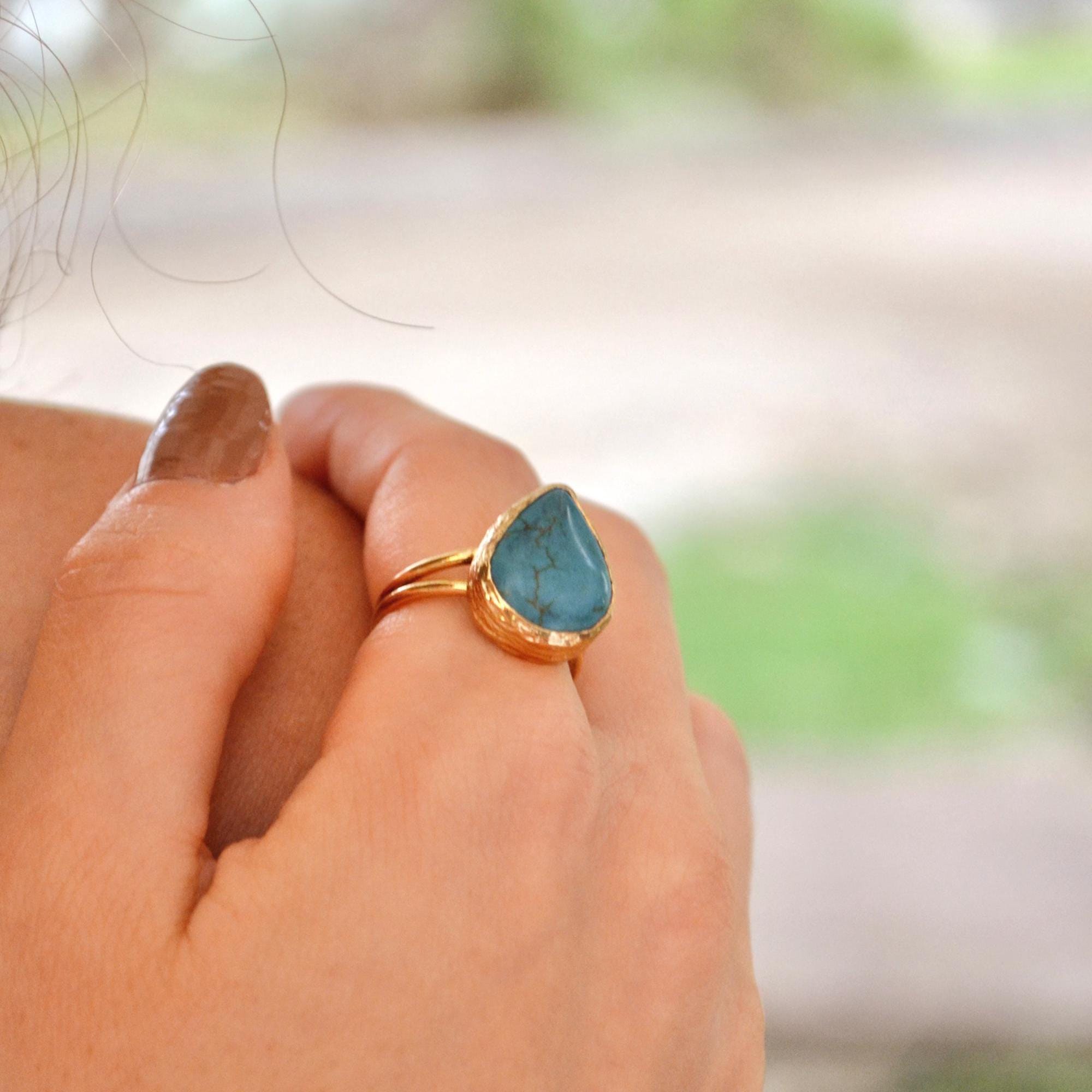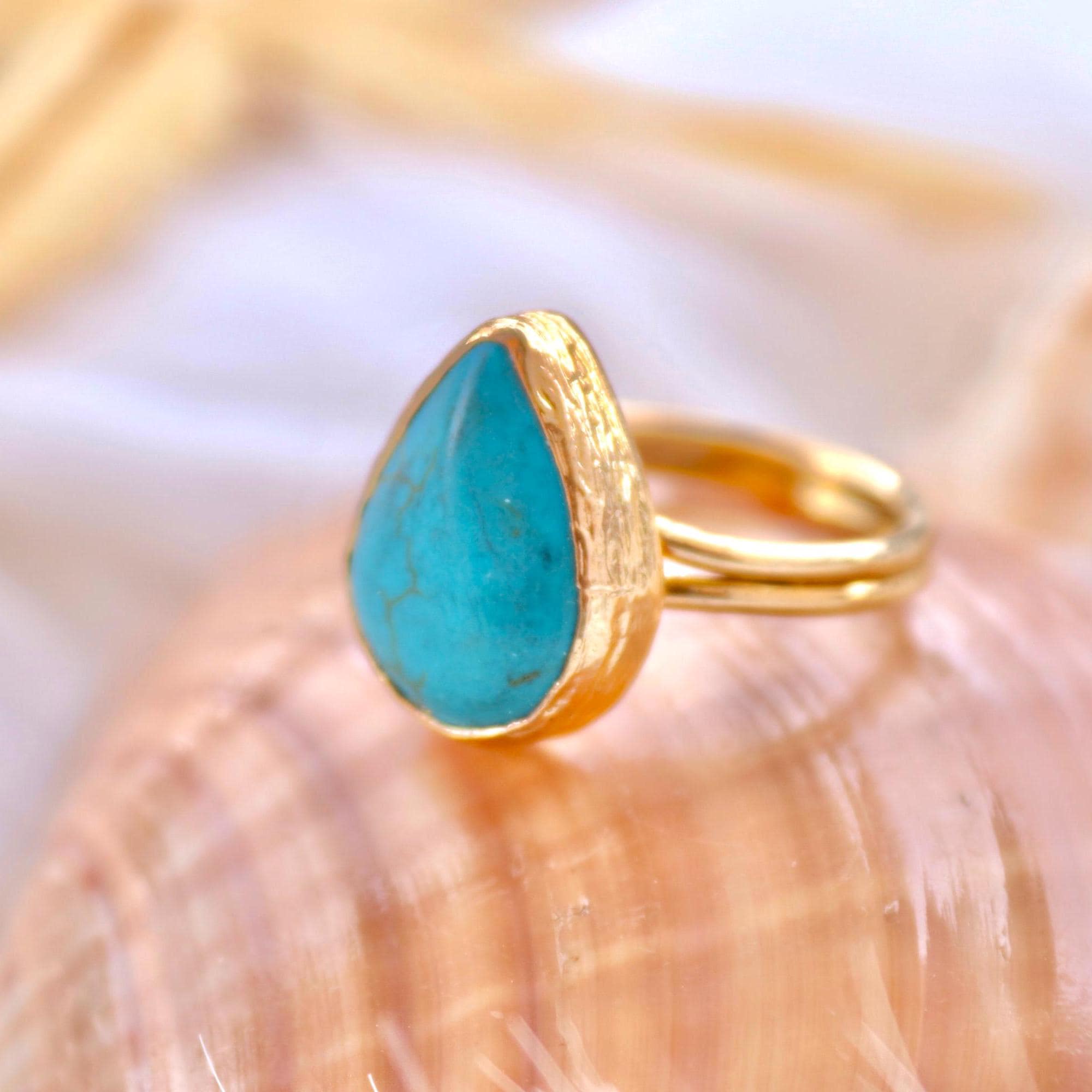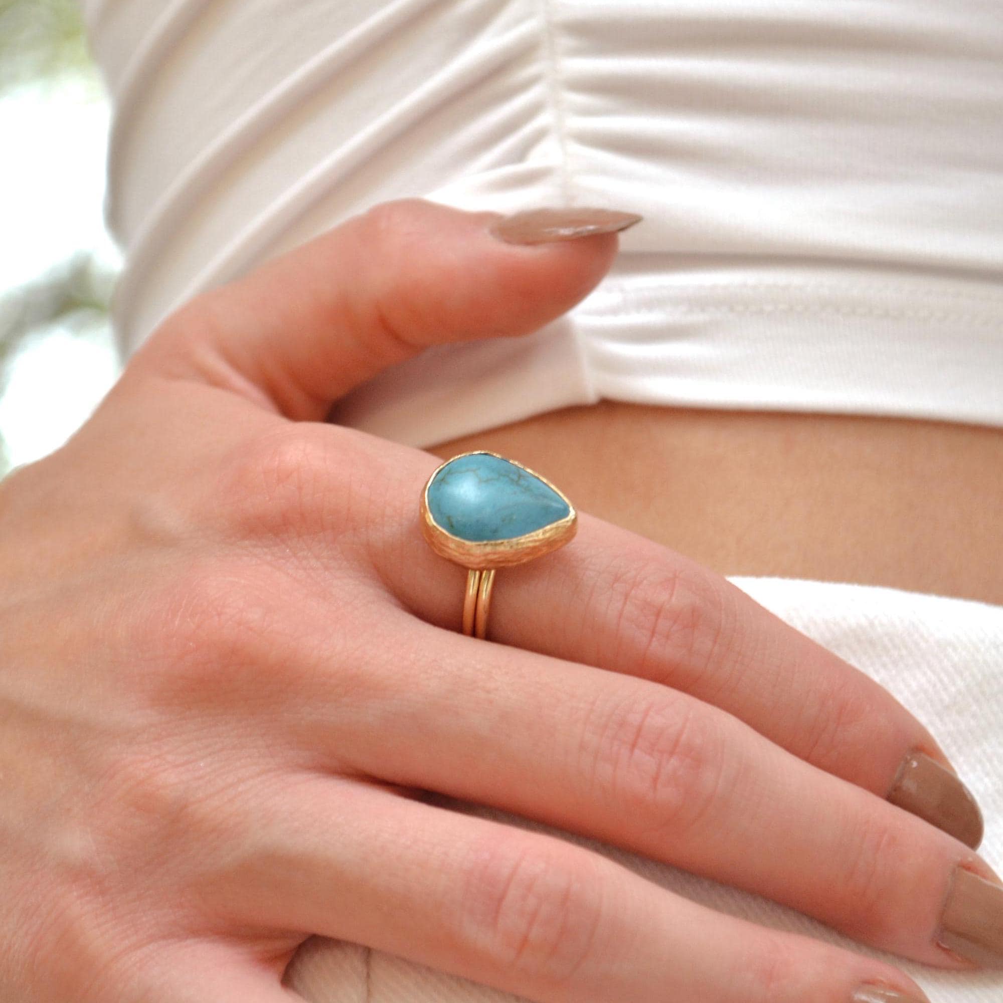 Turquoise Pearl Jewelry Set, Turquoise Necklace Earrings Ring Set Freshwater Pearl Turquoise Jewelry, Gold Statement Jewelry, Gift for Her